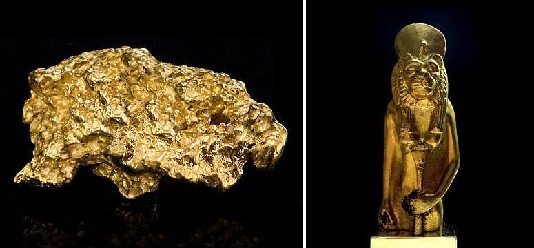 De gauche à droite : Pépite d'or - statuette de la Déesse Sekhmet... photo blackbird