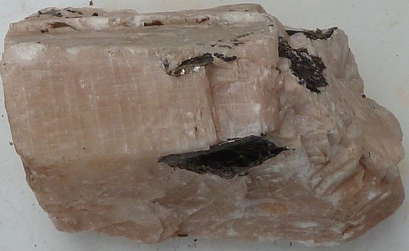 Pièce 1- Ressemble à de la baryte massive beige-rosé avec du mica,