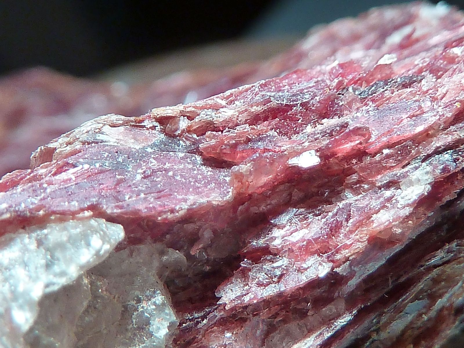 Pour revenir au sujet, si on considère que le mica part en lamelles, ici, le minéral rose vif, par endroits, se délite plutôt en petites écailles...mais il est compact solide ailleurs.