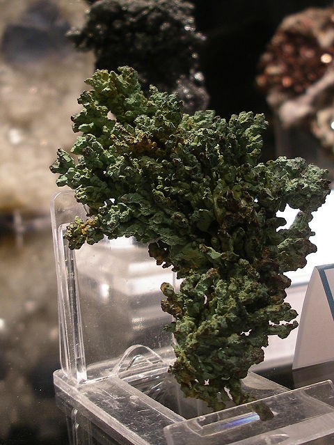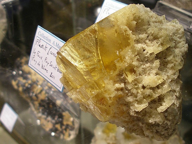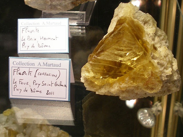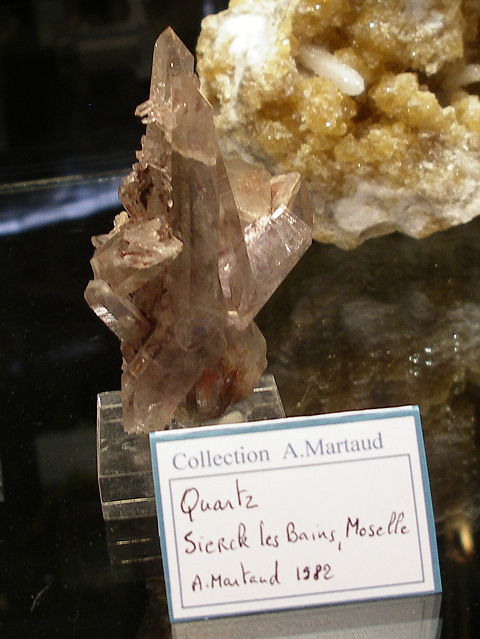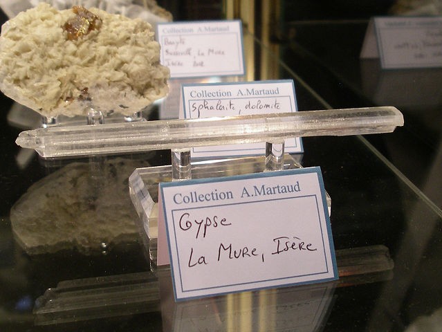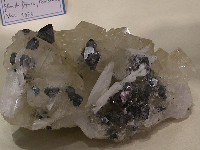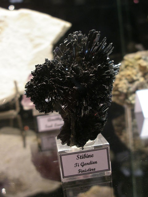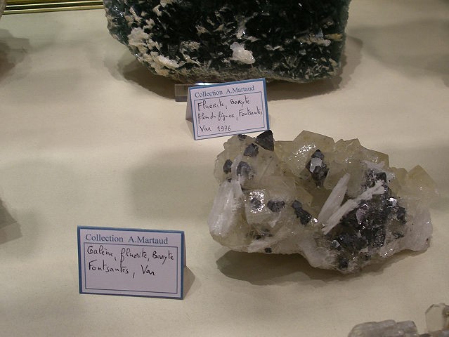 Je mets seulement les photos des minéraux Français qui sont dans les vitrines de l'exposition . Je tiens à remercier ceux qui ont prêter leurs pièces . Le thème de cette année les minéraux Français. Je mets parfois une photo de l'étiquette, cela donne une échelle de grandeur. La première vitrine était consacré à une découverte de splendide sperkise, mais je n'ai aucune photo valable,désolé