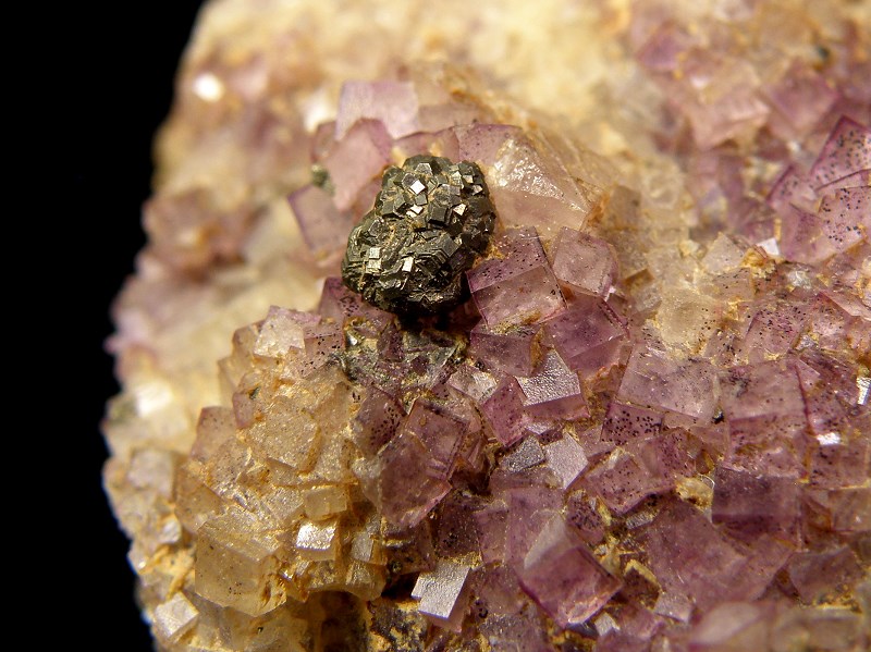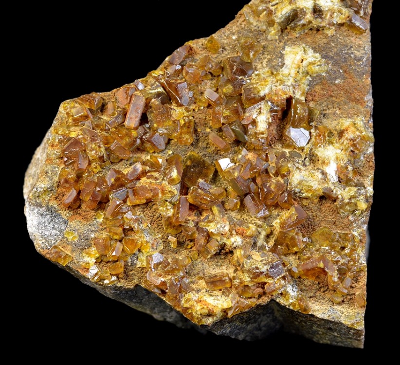 La mottramite est un peu floue, ok.. Elle se présente en petits "grains", sur la gangue entre les deux couches à goethite (photo 2)