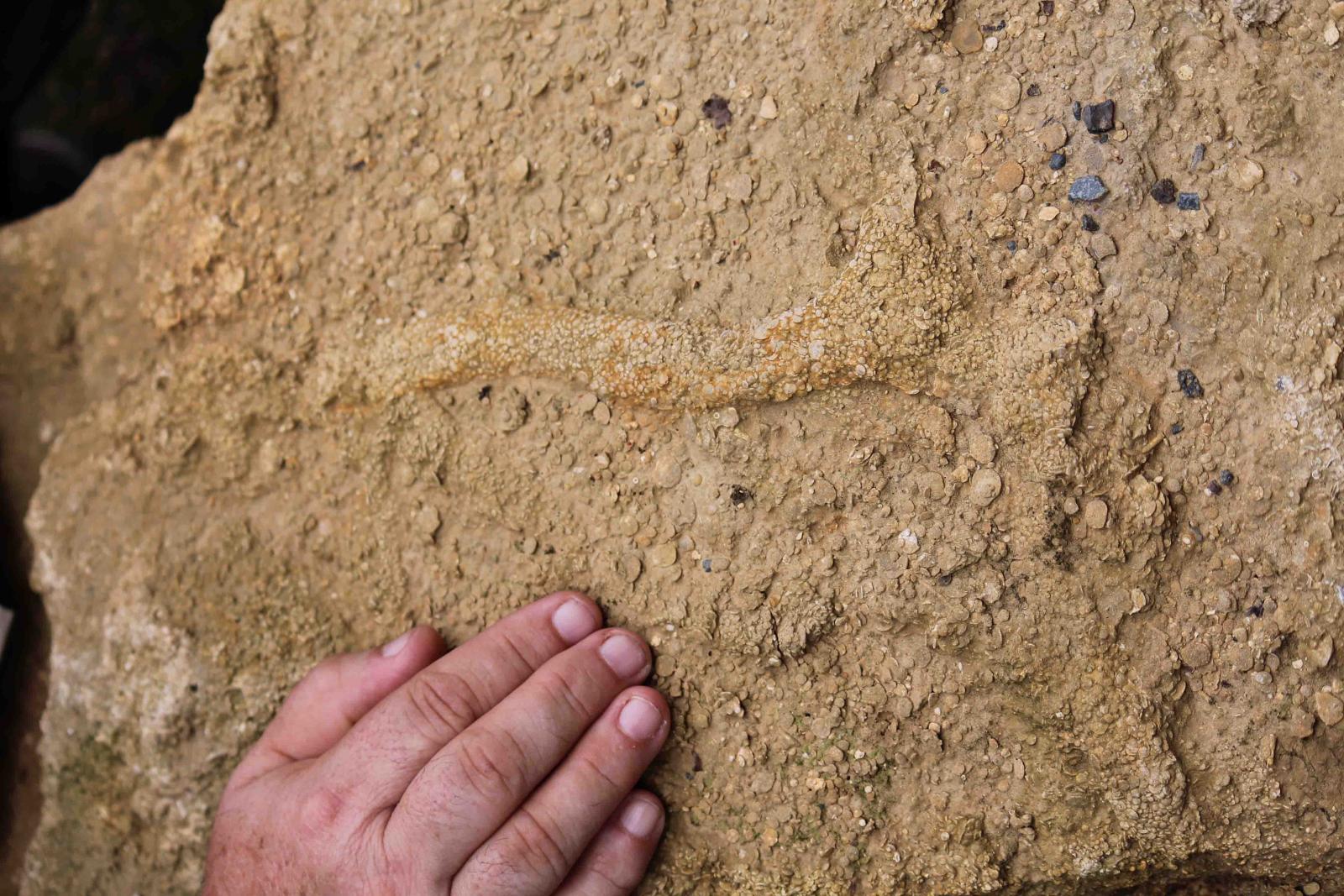 les deux photos représentent des thalassinoïdes: remplissages de terriers de crustacés , ici non pas avec du sédiment vaseux mais avec des petites nummulites; une découverte ?