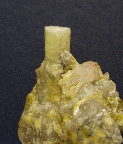 Vu le succès inattendu du premier petit béryl d'Ariège, je vous présente le second, plus petit (1cm), moins bien formé, mais mieux dégagé de la gangue de pegmatite ; il était dans le même bloc que le premier, le dernier que j'ai cassé ce jour-là après 2h30 de frappe infructueuse...
