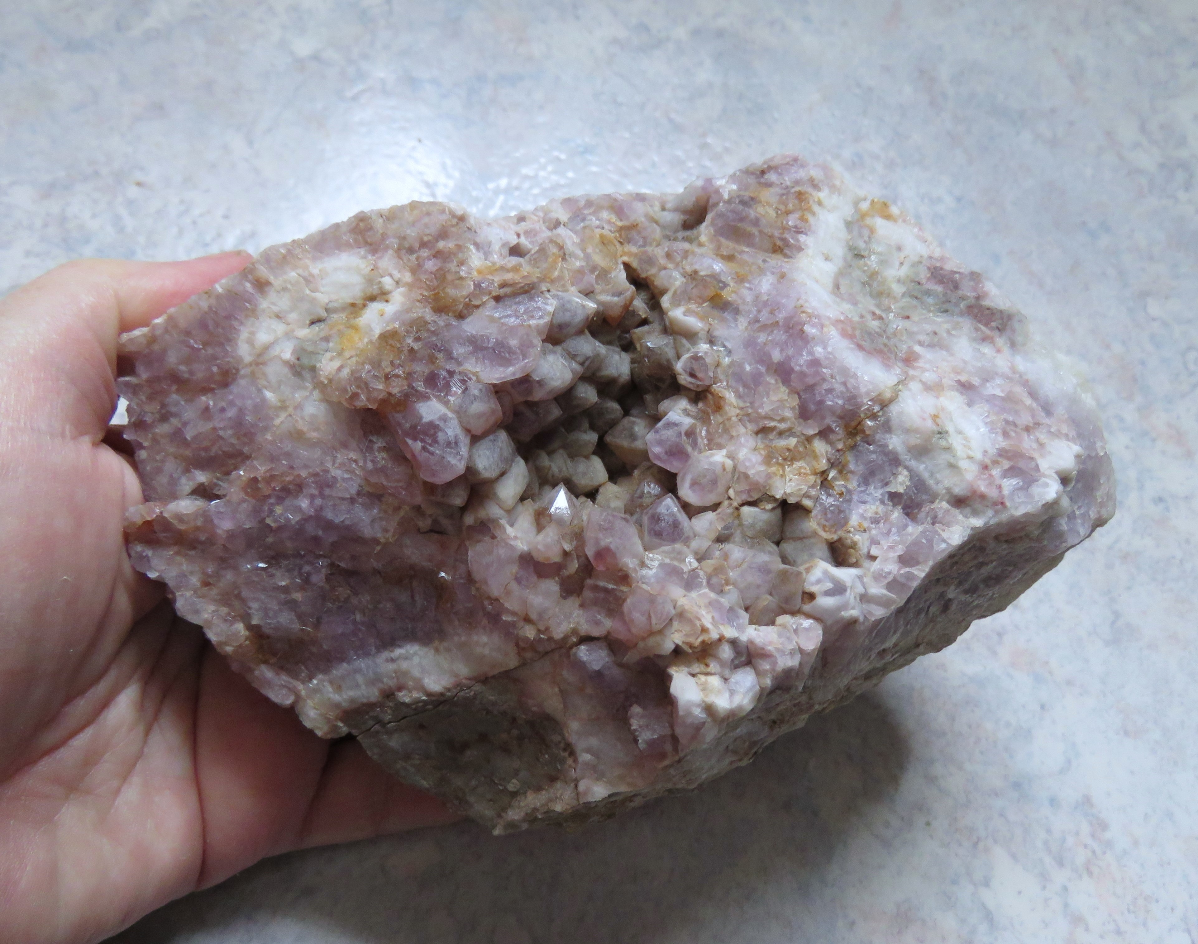 La roche-mère, appelée localement calcaire capucin (en fait un calcaire dolomitique brun-rouge à brun-jaune) est très gélive. D'énormes blocs détachés sont réduits en miettes en quelques années à peine. Il faut être patient, et y a plus qu'à fouiller dans le tas, et s'épargner de la sorte les ampoules et les coups de marteau sur les doigts. J'adore !