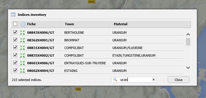 si je reprend l'exemple de brassac : le filon à plomb apparait ; la zone de recherche pour tungstene (skarns) est sur le BRGM mais n'apparait pas dans l'outil ; la zone à phosphate n'apparait nul part !!