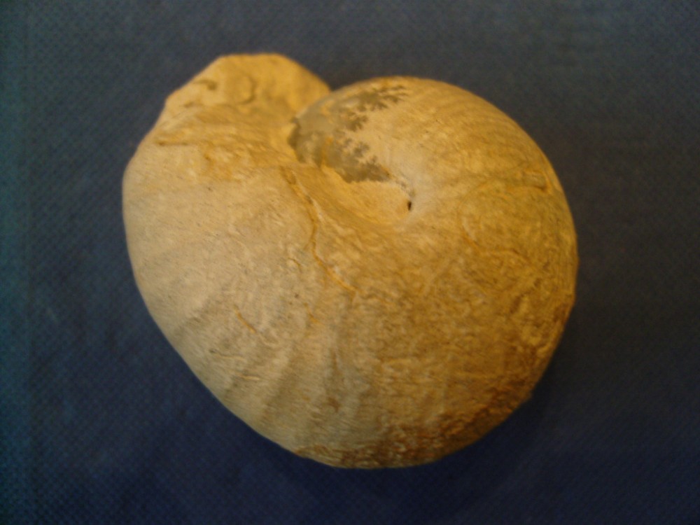 En me baladant sur la plage je suis tombé sur cette ammonite qui m'a intrigué de par le trou dans la coque, qui date peut être avant le processus de fossilisation ?
