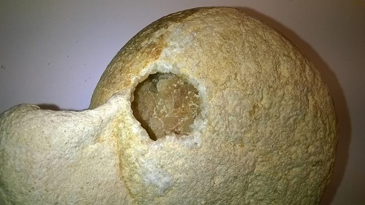 Après c'est peut être juste une roche je ne sais pas, c'est pour cela que je me tourne vers vous ! (Quand j'ai vu les photos de vos ammonites je me suis senti un peu bête mais bon ^^ moi ça m'intrigue ce trou et ce qu'il y a dedans, même si c'est probablement pas grand chose ! )