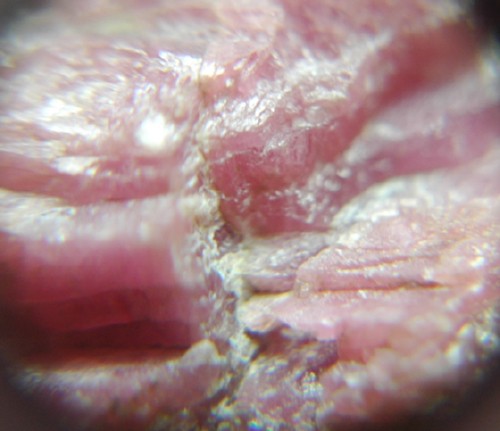 Pour la 3, j'aurais pensé à Rubellite-Ellaite dans Lepidolie, la dernière photo montre quelque chose de similaire, si ça raie pas le verre alors ?