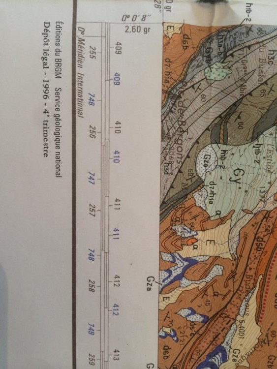 Ceci dit, le système légal français depuis fin 2000 est le RGF 93. Il y a bien longtemps que je n'ai pas acheté une carte géol et je ne sais pas comment le RGF 93 apparaît sur des cartes récentes.