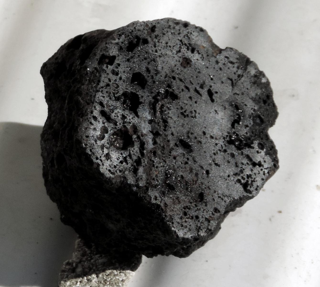Oui mais, car il y a un oui mais, si cela est un déchet de fonderie, je suis tombé sur un déché qui contient très peut de fer, et bien réparti dans sa masse, car un aimant du type néodyme est attiré qu’a environ 10 ou 20 % de ce que fait un bout de fer, de plus j’ai essayé de l’attaquer avec une pince coupante et cela semble assez friable, mais par compte pour la couper avec une scie à métaux c’est plus dur que du métal, j’avais bien l’impression de couper un caillou, je n’est plus qu’à la polir pour la faire parler, quand cela sera fait dans tout les cas je mettrais une photo de la coupe.
