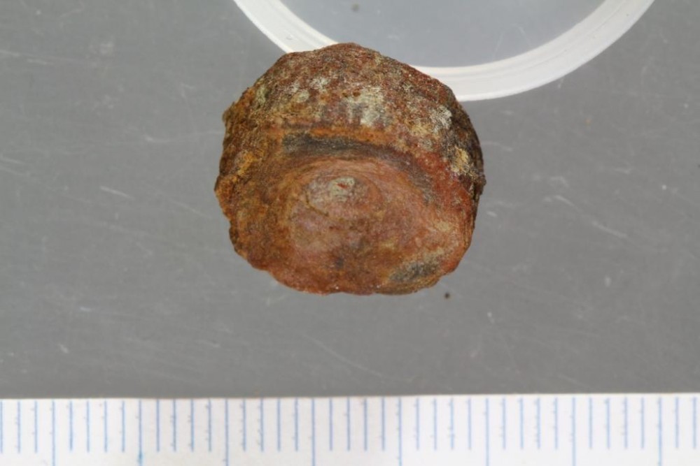 Par ailleurs, j'ai trouvé quelque chose qui me fais penser soit à une vertèbre du bout de la queue d'un vertébré marin, soit à un écrou rouillé. Comment peut-on faire la différence ?