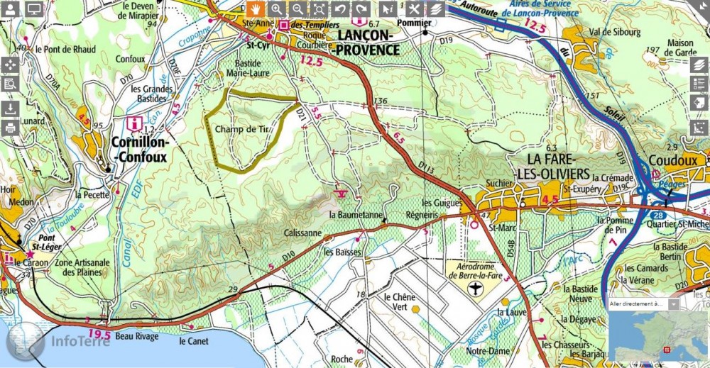 -et enfin au contact du bord supérieur une partie des pistes de l'école de l'air de Salon de Provence