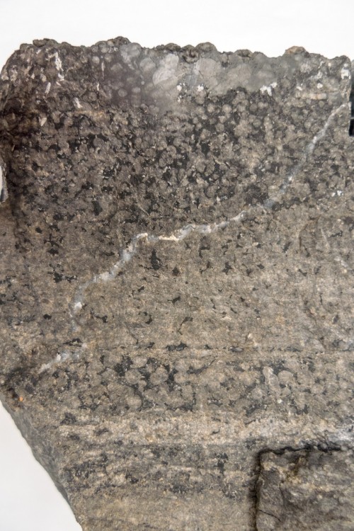 Surface d'une plaque de calcaire oolithique issue du démantellement de cet affleurement.