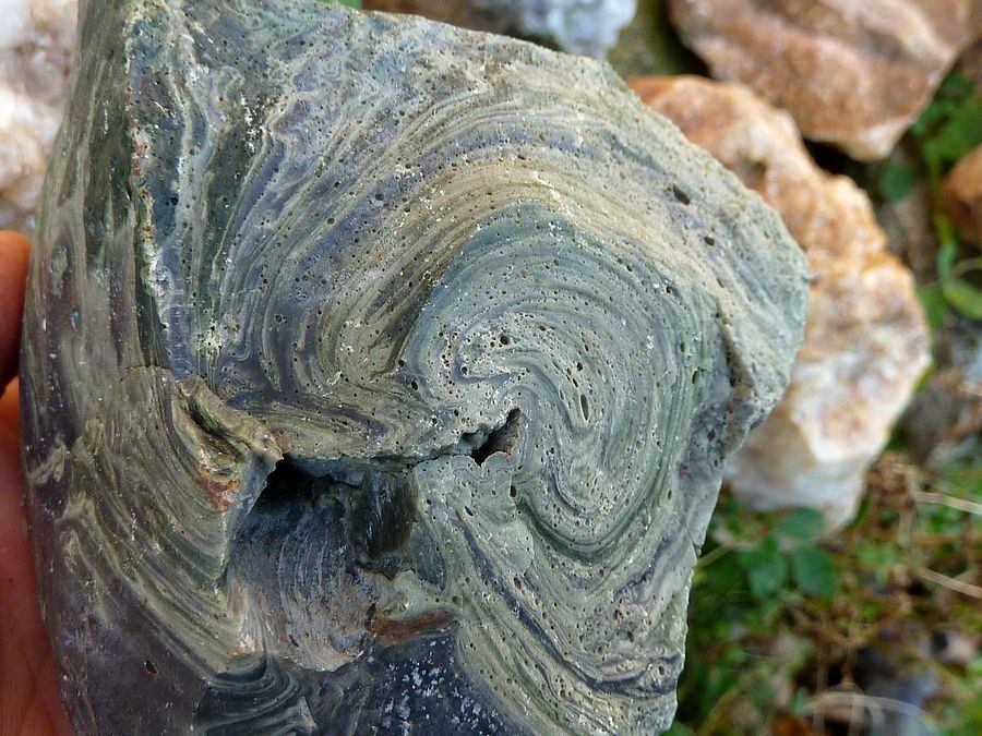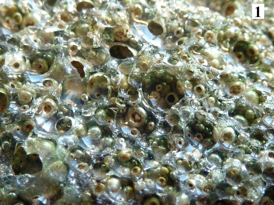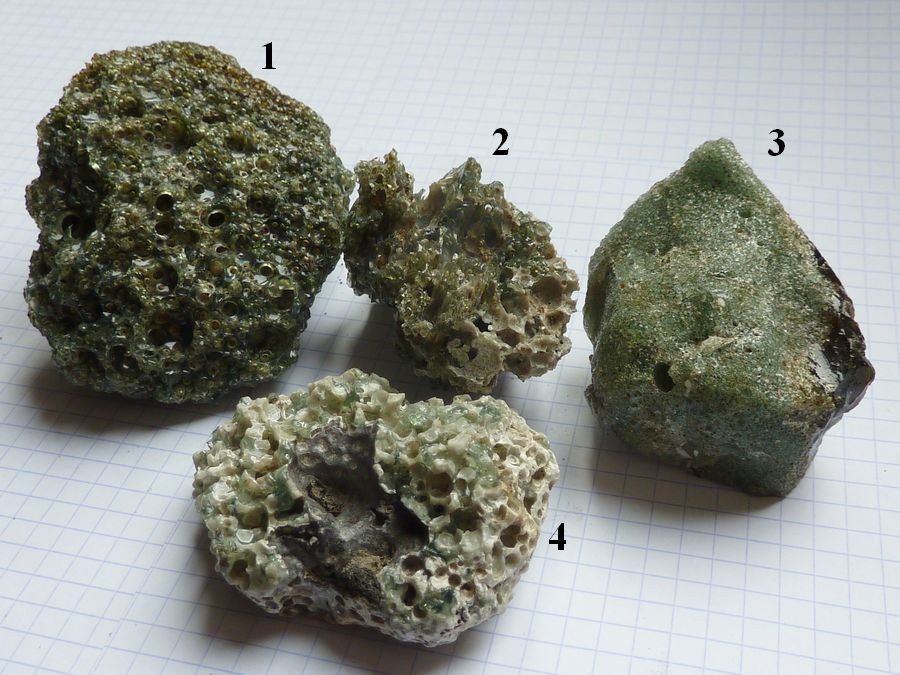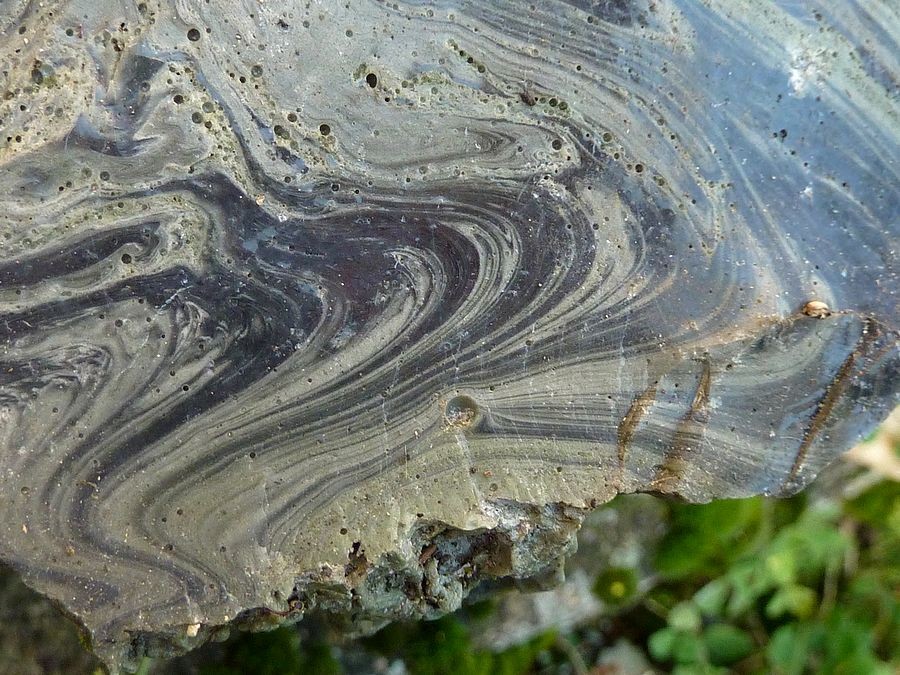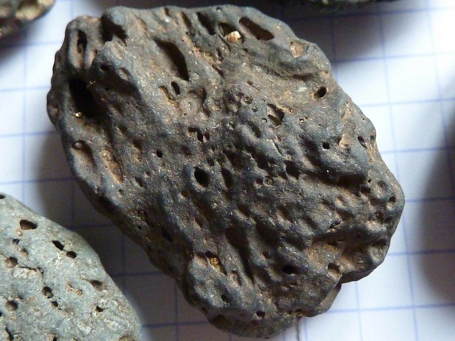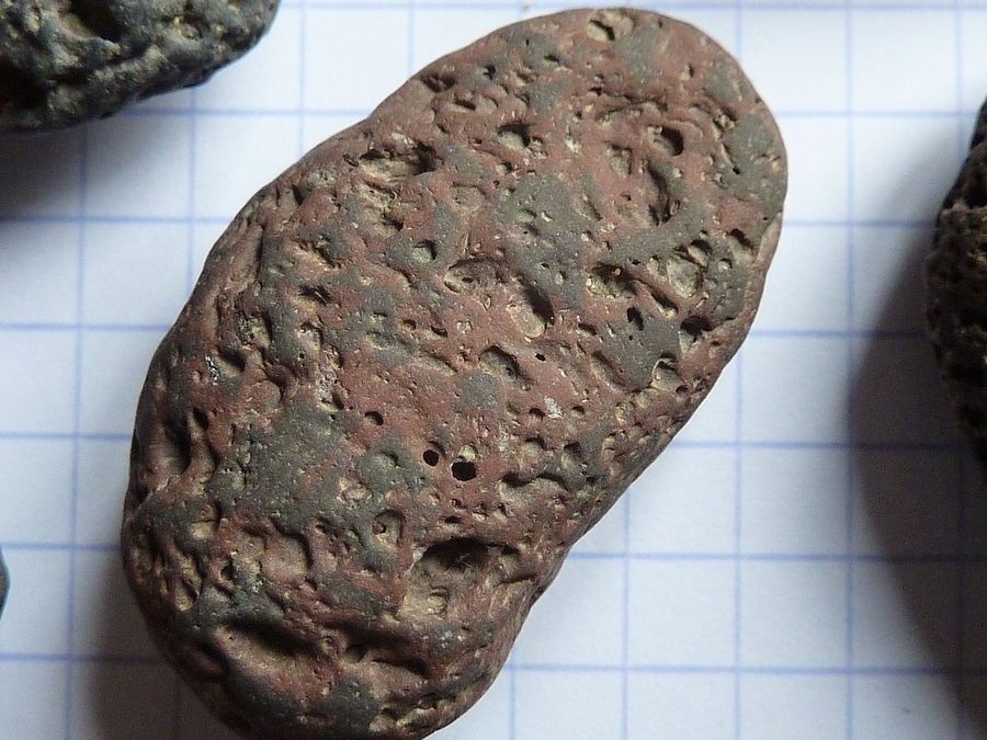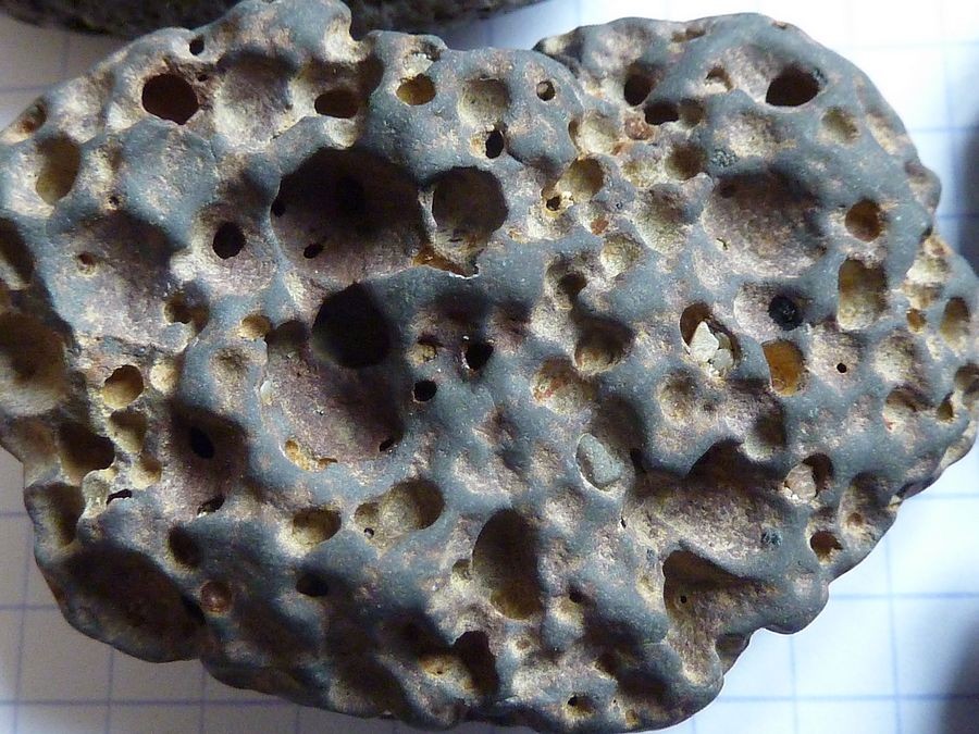 Pour comparaison voilà des bulles de différents diamètres dans des vrais galets de roche volcanique.