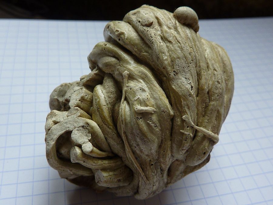 Cependant ces pièces qui proviennent d'un autre endroit (chapeau de fer du Morvan) contiennent de la pyrite et de la baryte ce qui certifie leur origine naturelle. Lacroix emploie le terme de limonite scoriacée.