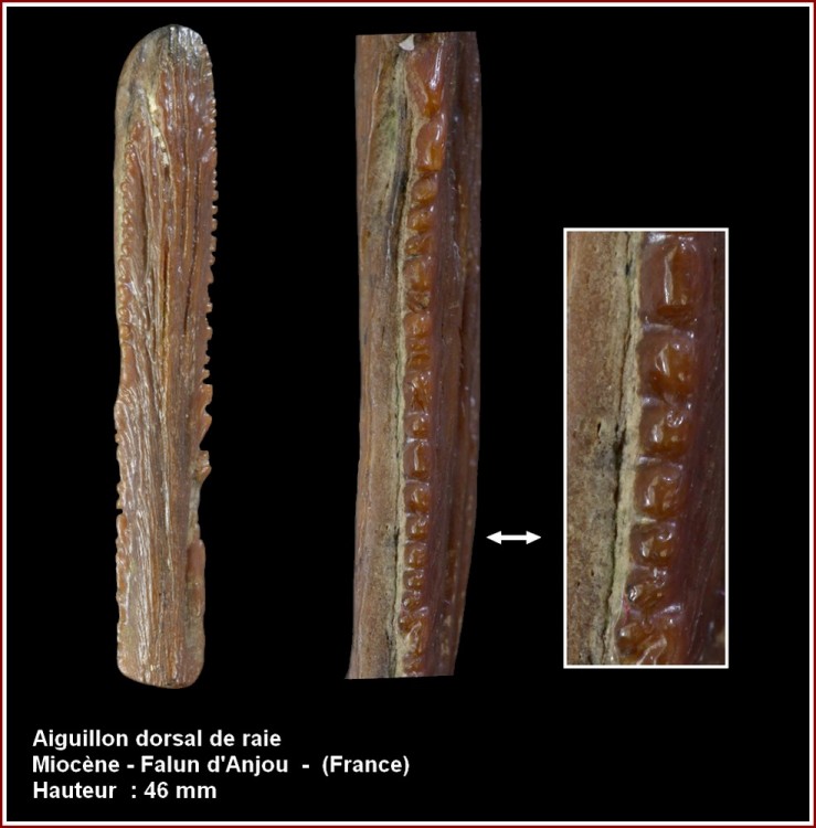 La partie incarnée des aiguillons de raies est dépourvue de denticules comme c'est le cas sur la pièce que tu présentes.
