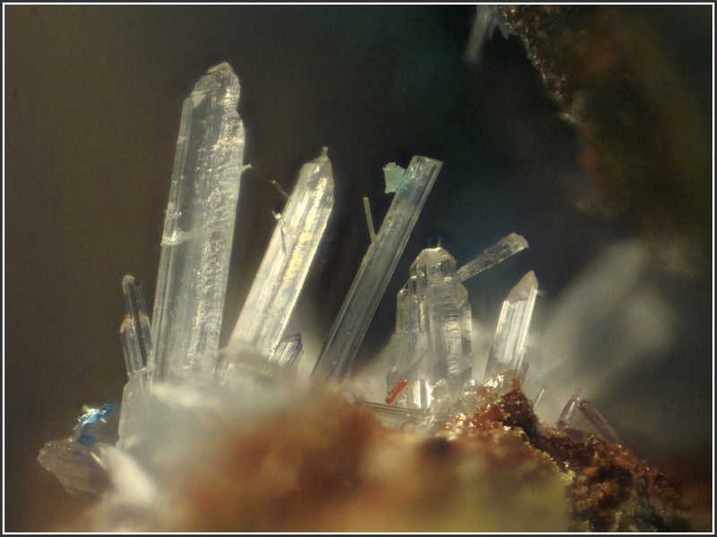 une idée pour ces petits cristaux sur baryte en feuillets (cerusite ? gypse ? )