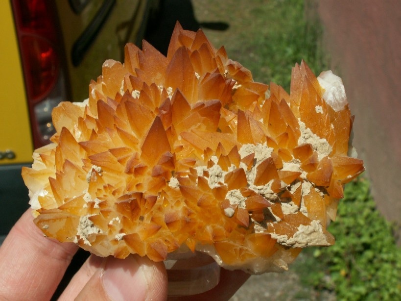 Je commence par une jolie calcite, que dis-je une super calcite de St salvy dans le Tarn (81). Elle m'a été donnée par un ancien mineur de St Salvy (qui n'avait plus malheureusement de Pyro dans sa cave!!)