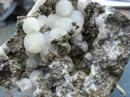 Au fait plus de trace d'hémimorphite ? Le dernière fois que j'ai vu des traces de minéralisation de zinc, ce fut des calcites centimétriques transparentes avec smithsonite crême à marron.