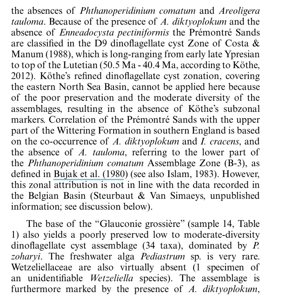 Les Auteurs ne semblent pas trop en accord avec ce travail realisé en Allemagne, et montre d'après leurs micrfofossiles, le parallelisme de Prémontré avec la biozone NP13 en Belgique. Après il y a peut-être des batailles de clochers ?