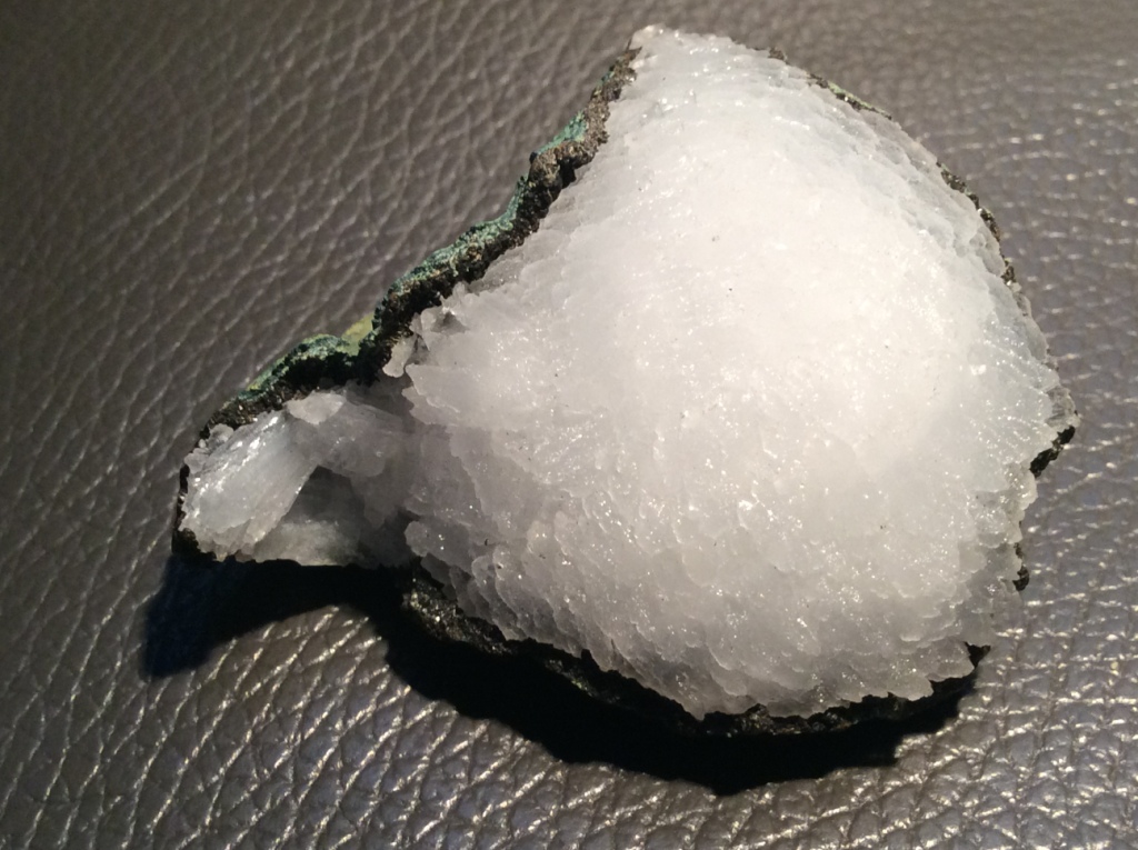 Voici une zéolite que l'on ma offerte il y a quelque temps, quelqu'un aurait-il une idée de sa provenance ( Inde ?) et si possible de quelle zéolite il s'agit.