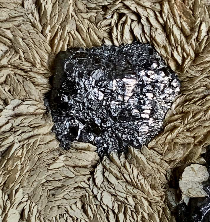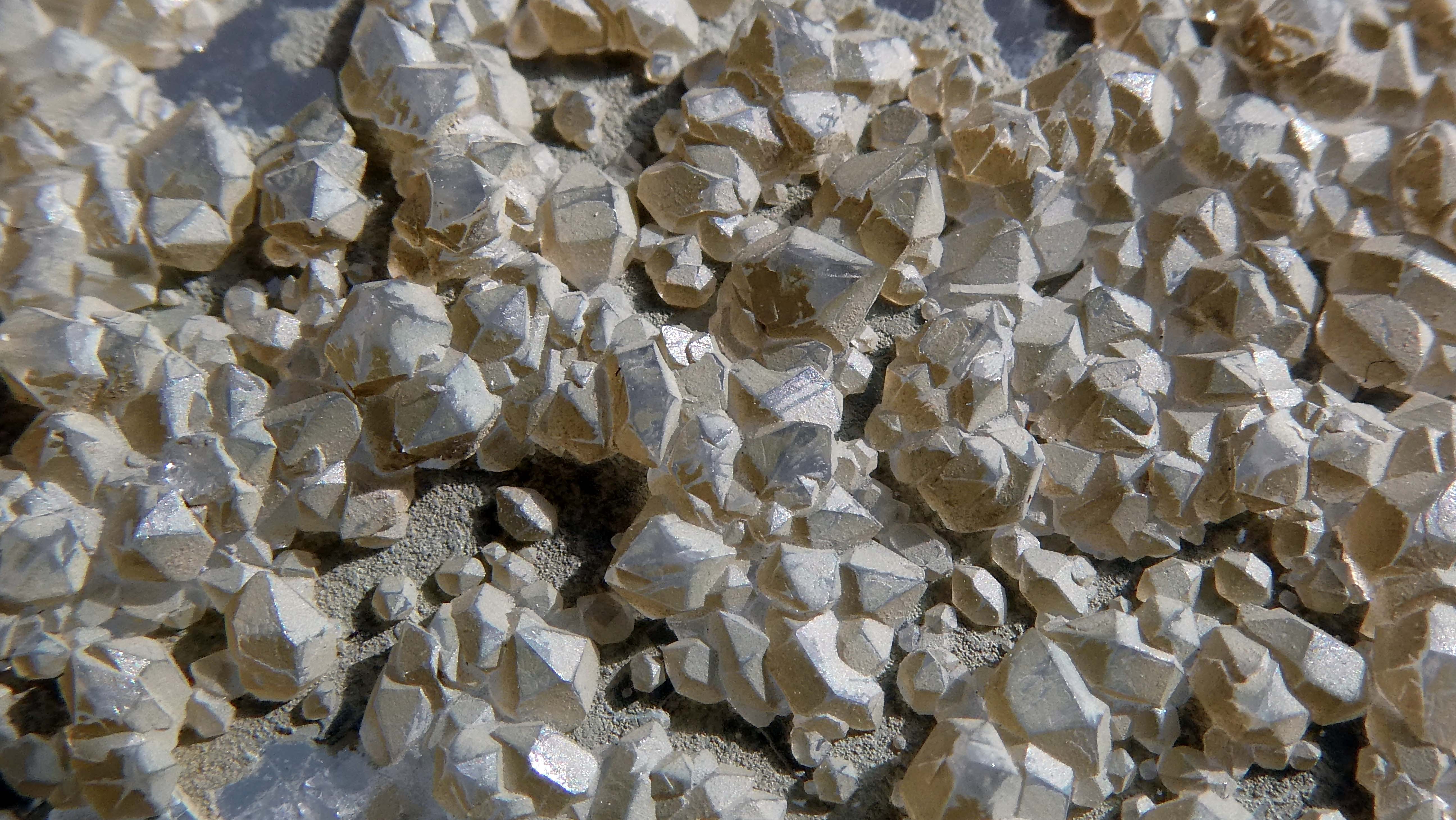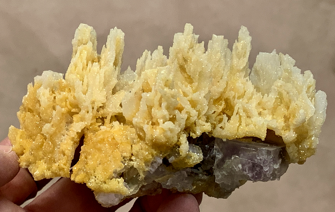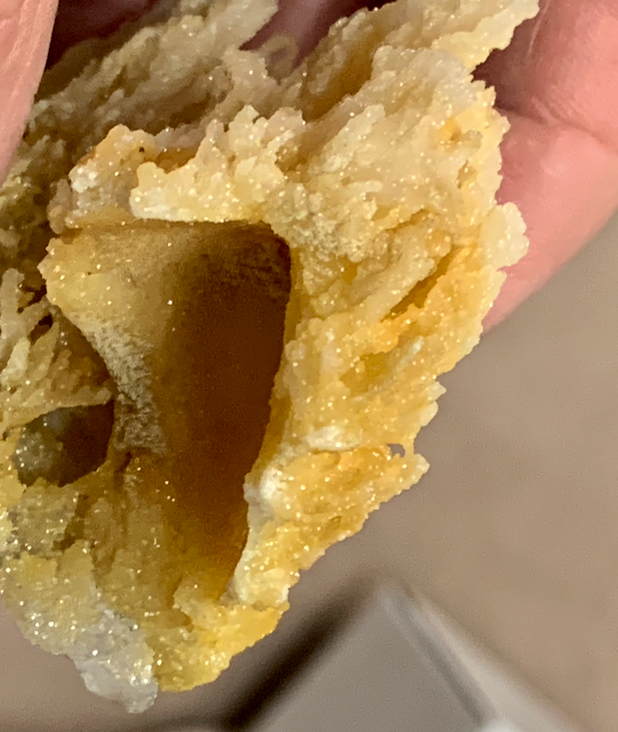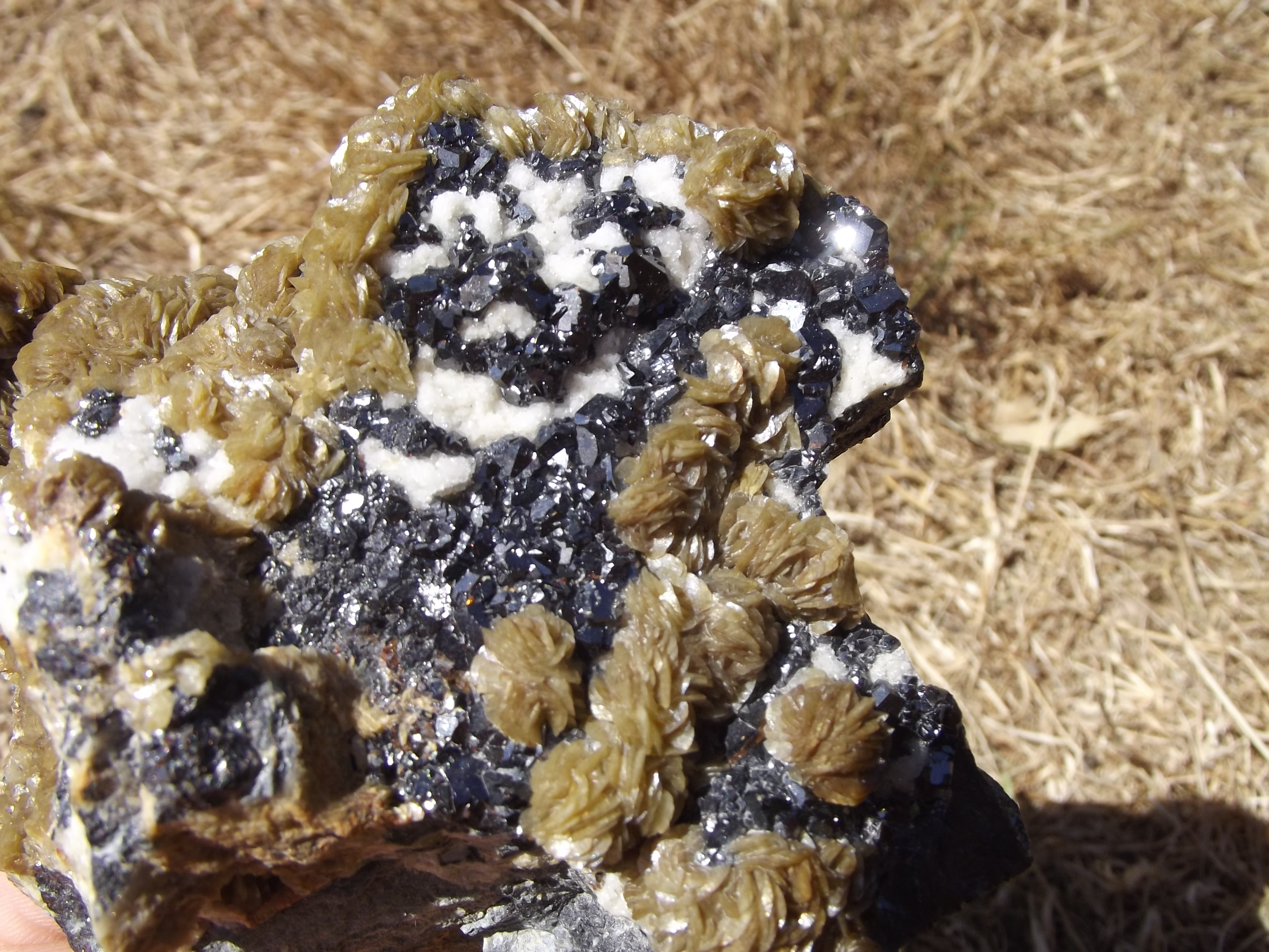 Encroûtement de quartz et calcite, bien mal dégagé (par le géologue des lieux qui en avait fait un presse-papier). Mais un bon souvenir quand même !