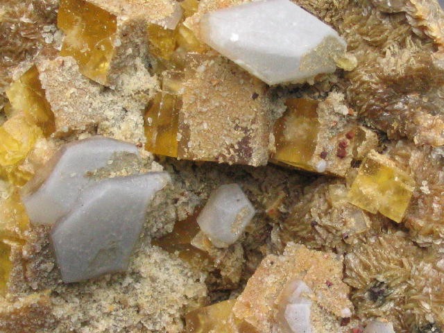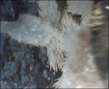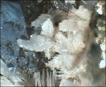 Sur un échantillon de peyrebrune , sous mon oeil ébahi , il y a ce qui ressemble à de l'aragonite ? !!!