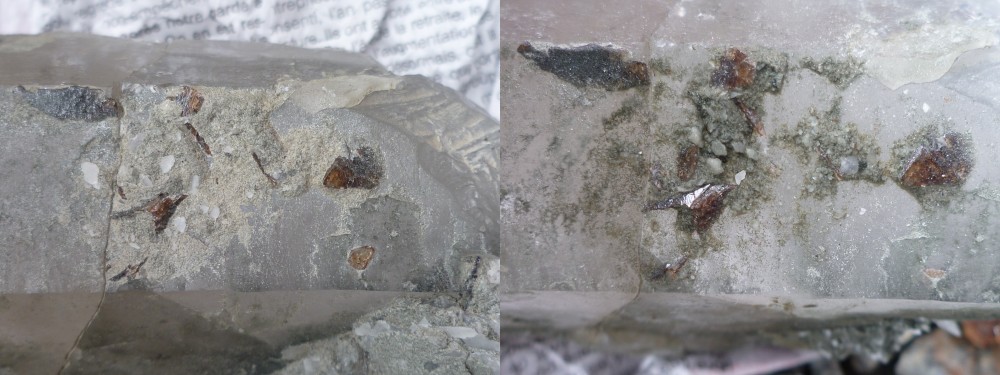 J'ai aussi testé sur des plaques de micaschiste (pas de photos car pas super parlant si on a pas la pièce en main).