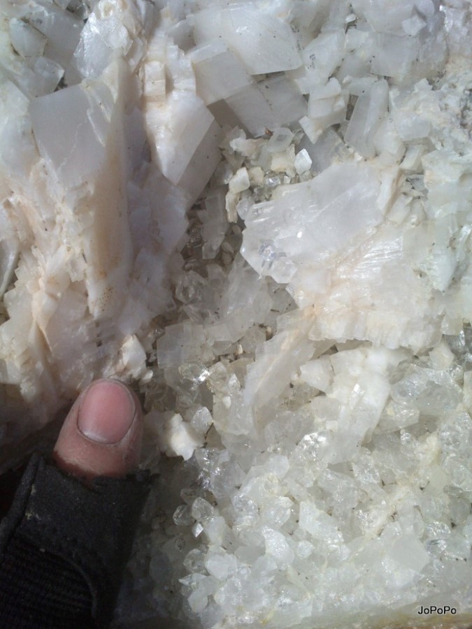 Bonjour , la zone est très localisée et fait environ un peu plus d'un mètre carré avec des cristaux millimétriques.Les zones photographiées font environ 20cm x 30cm.C'est juste pour le plaisir des yeux car c'est insortable et de toute façon ça n'aurait pas beaucoup d'intérêt et je trouve que c'est plus joli en place.