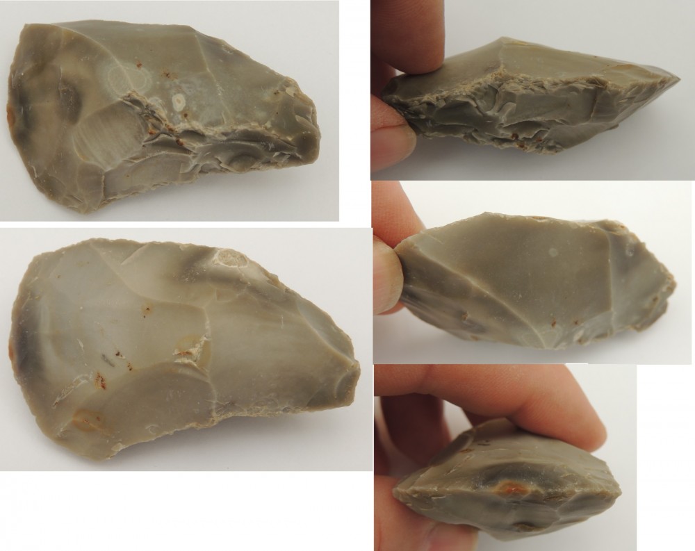3 silex d'un même champ trouvés ce we (80) dont un nucleus très surprenant par sa matière (silex rubané je suppose mais pas de la région à ma connaissance). Quel intérêt de "trimbaler" un tel nucleus dans une région où le silex ne manque pas?