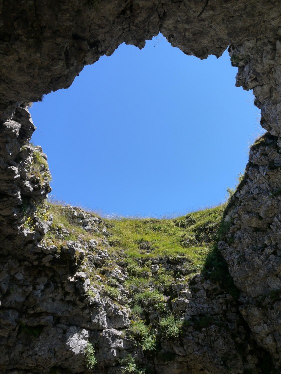 • il s'agit d'un aven, les fragments rocheux sont issus de l'erosion de la paroi (gelifraction). L'alimentation en elements rocheux anguleux est facilité par la lithologie de calcaire "en plaquette" ou noduleux.