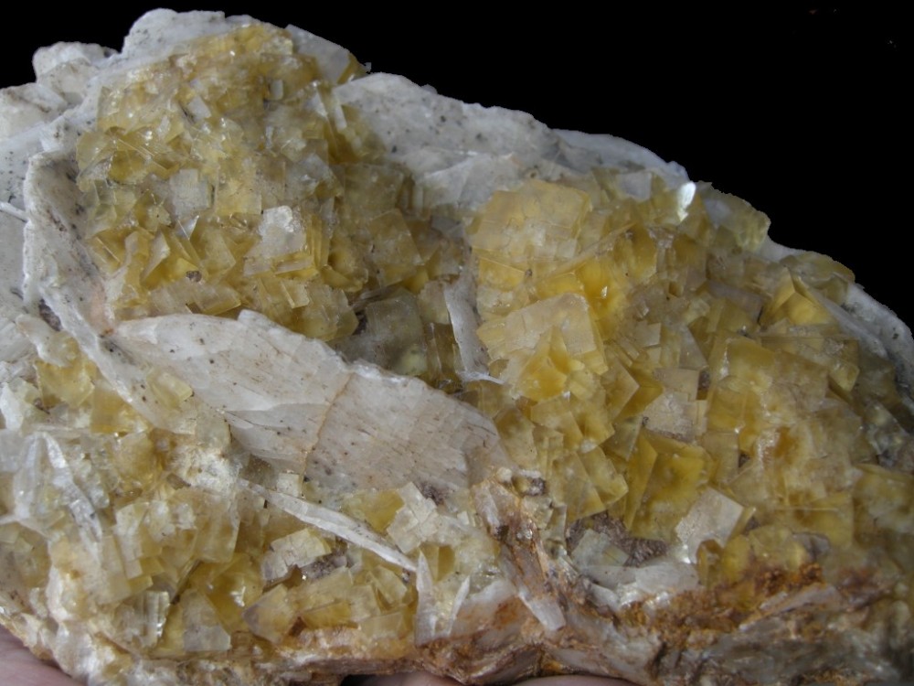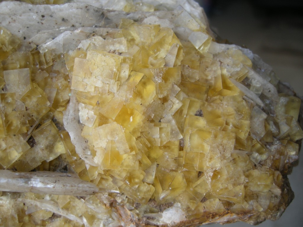 Pour rester dans les petits gisements a fluorite, direction le nord-ouest de St Pourçain s/Sioule avec la petite carrière de Verneuil en Bourbonnais qui a fourni de la fluo de différentes couleurs (essentiellement de la jaune) associée à des lames de barytine et quelques mouches de galène.