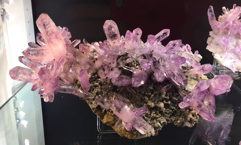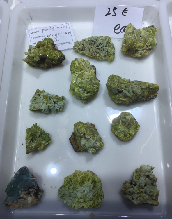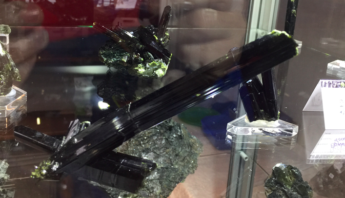 Effectivement dans un stand géant de la compagnie britannique il y avait des nouvelles tourmalines vertes de très belle couleur, mais pas 'très minéralogiques' et des Volodarsk comme on en déjà vu beaucoup. Ils auraient repris des travaux locaux d'après les rumeurs… à suivre.