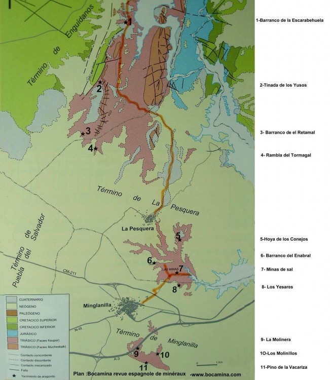 Minglanilla n'est pas le seul endroit où l'on trouve de l'aragonite en Espagne, dans le trias...