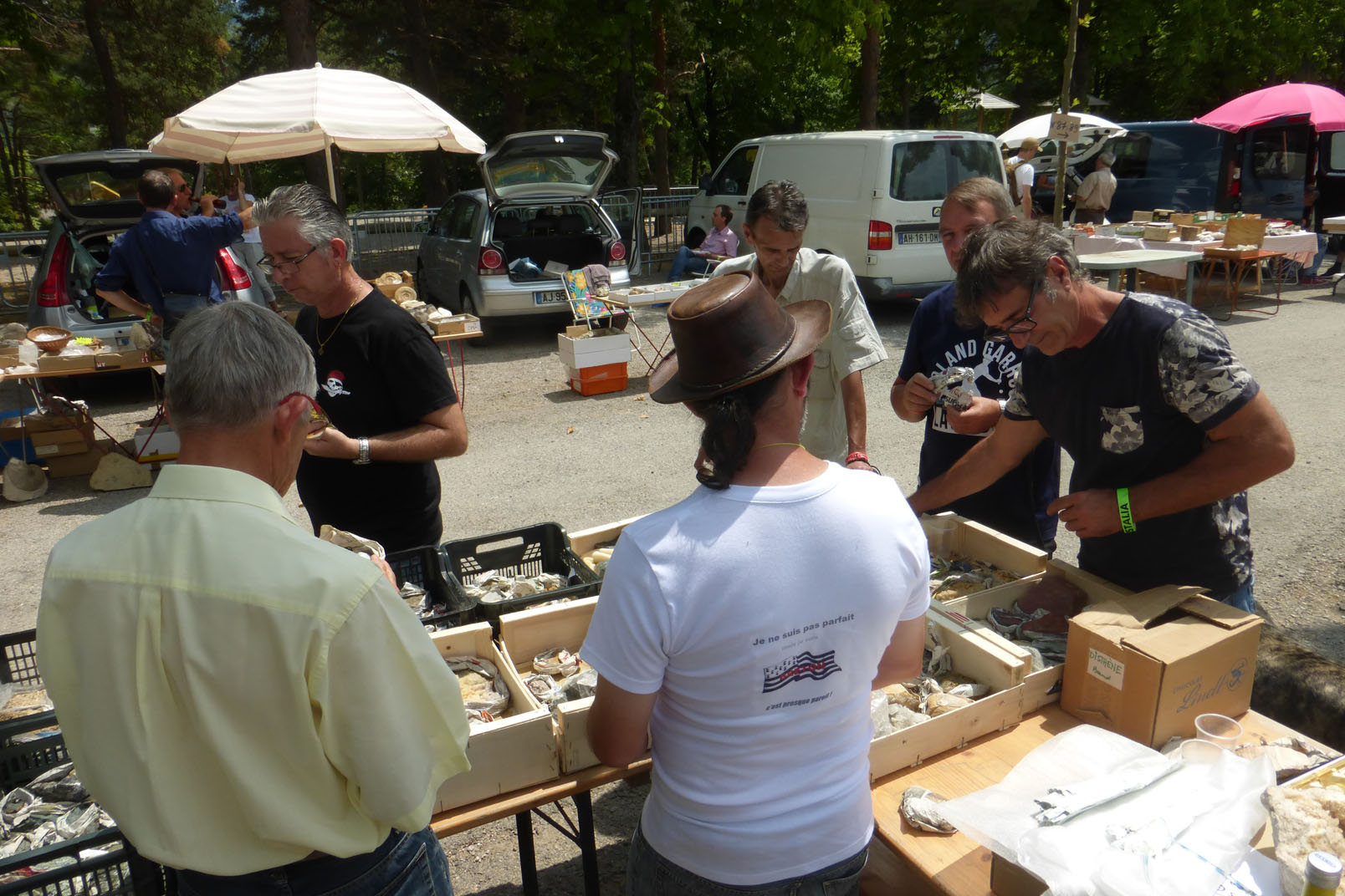 Sans grande prétention, 2 de mes collègues et moi même, débutant en septembre notre troisième année de Licence Science Terre (Environnement), venons également à la bourse de Millau, le samedi matin. Nous viendrons avec quelques pièces pour échange, trilobites, coquilles (fossiles), pyriteux de notre région...