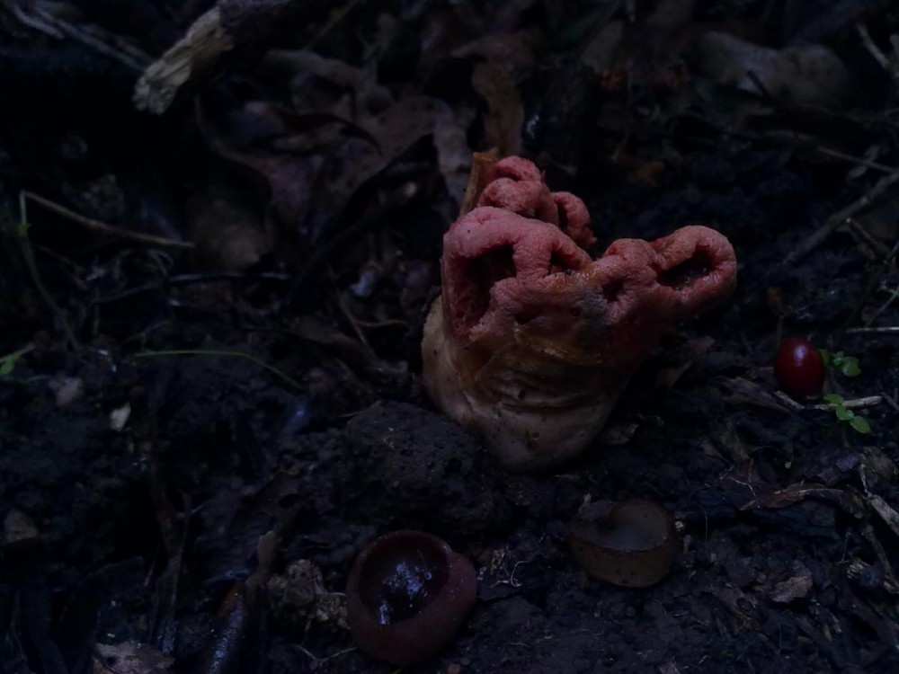 Lépiotes oui, pezizes oui (peut être ce qu'on appelle "oreilles de Juda") et Anthurus oui aussi. J'espère que tu as ramassé et mangé les coulemelles, c'est délicieux !