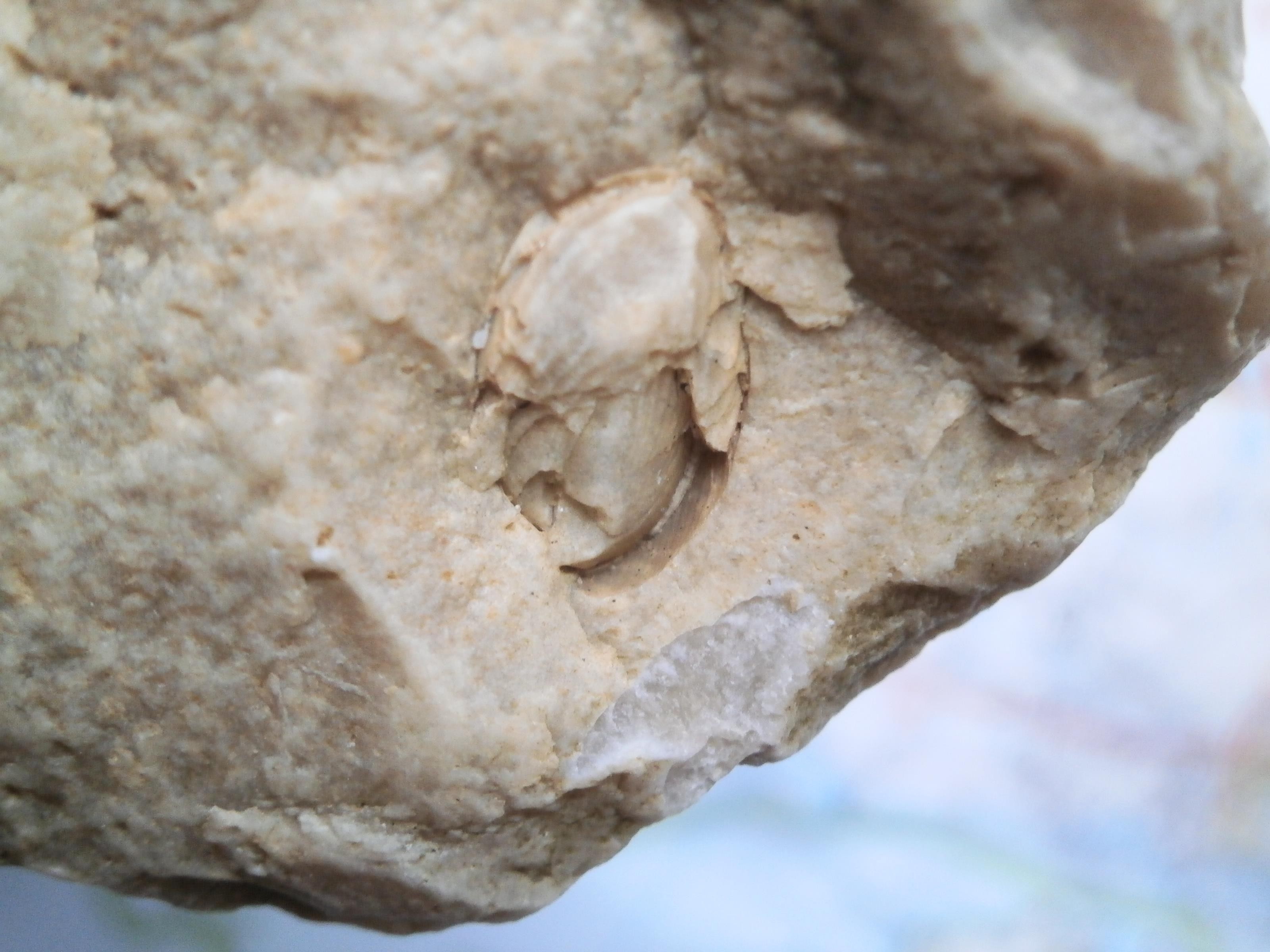 Je pense qu'il s'agit d'un moule interne de Rhynchonelle (Brachiopode) ou d'un Bivalve (Mollusque) le problème est qu'il faudrait le dégager entièrement pour l'affirmer