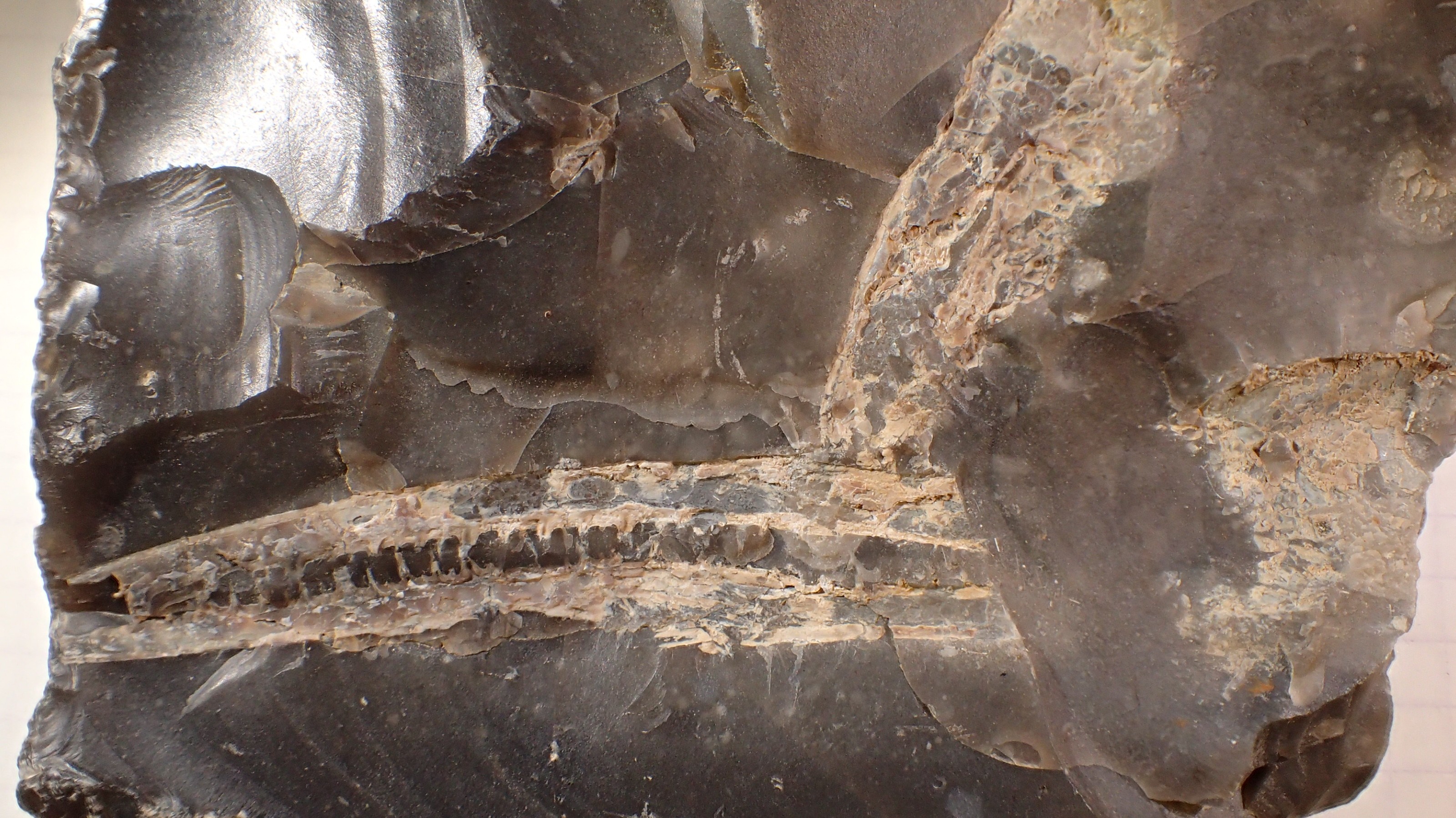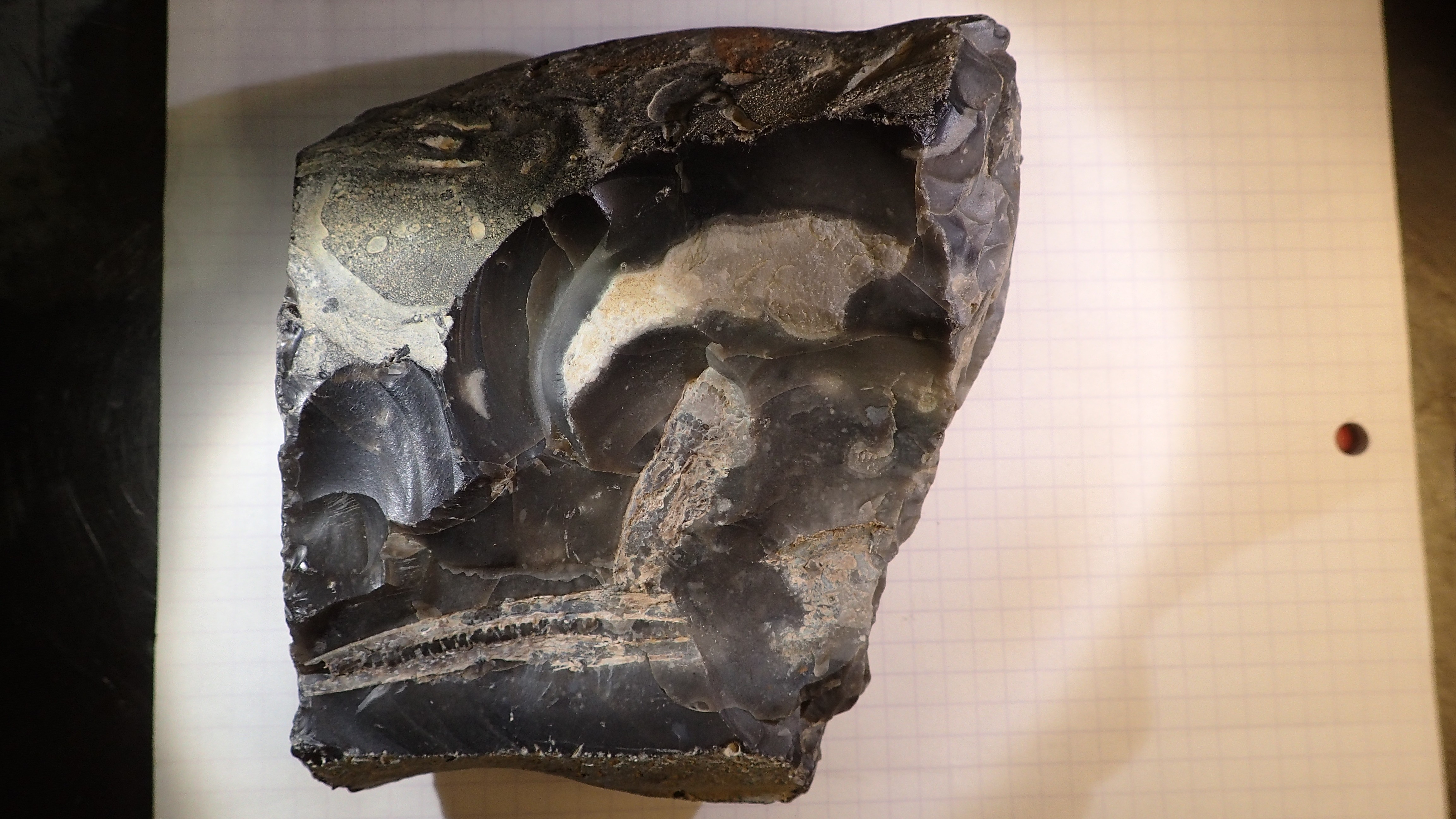 C'est une partie au cœur du silex: il y a parfois des zones plus grenues à l’intérieur du silex (j'avais essayé de débuter un sujet sur les roches et minéraux que l'on trouve dans le silex mais pas beaucoup de choses à proposer et peu de temps...
