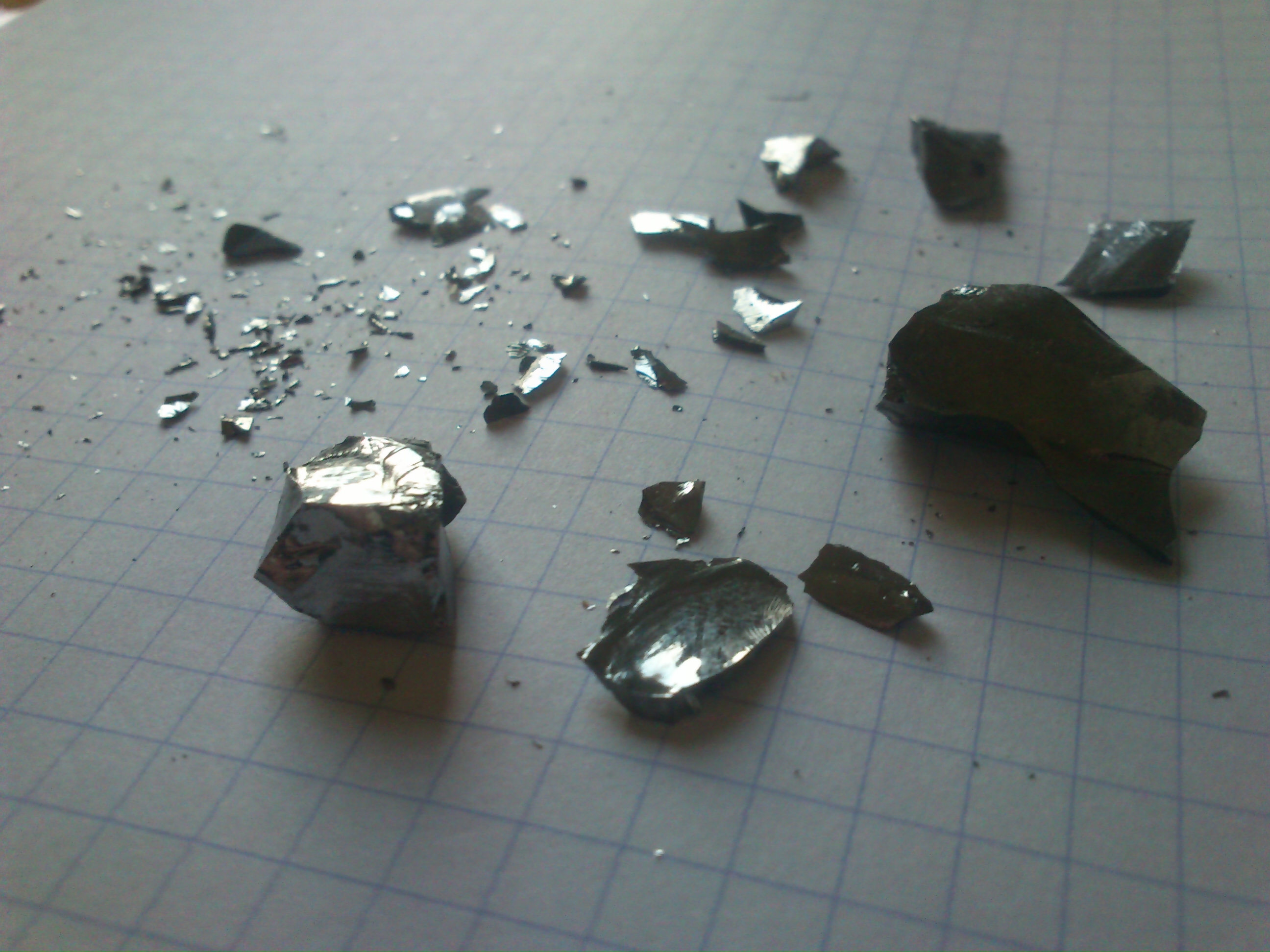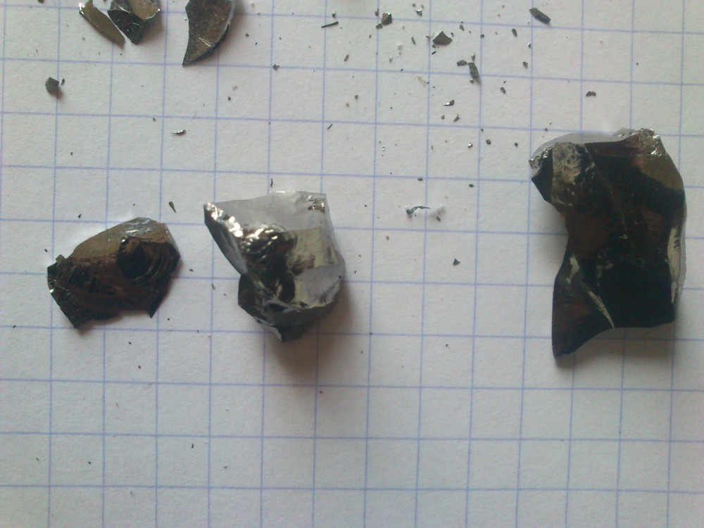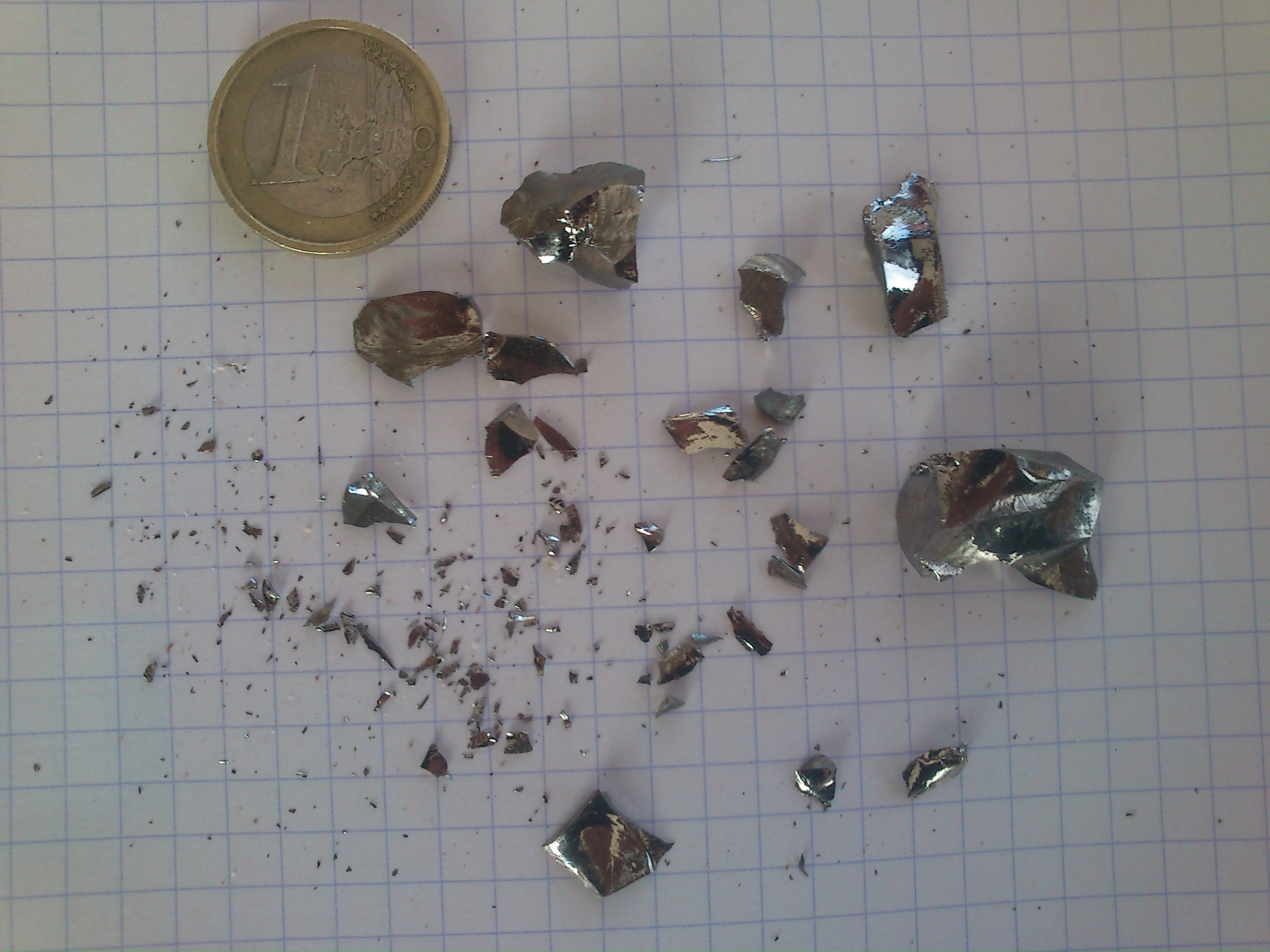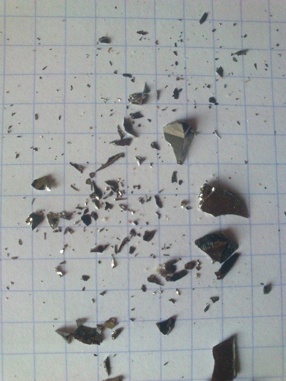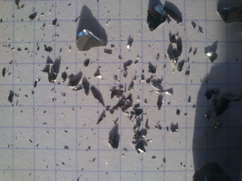 bonsoir aldebaran pour te repondre meme un eclat tres fin ne laisse pas du tout passer la lumiere! ca a vraiment un aspect metallique! et tester avec un  voltmetre ca reagit! voila je prendrais des photos des eclats pour plus de precision