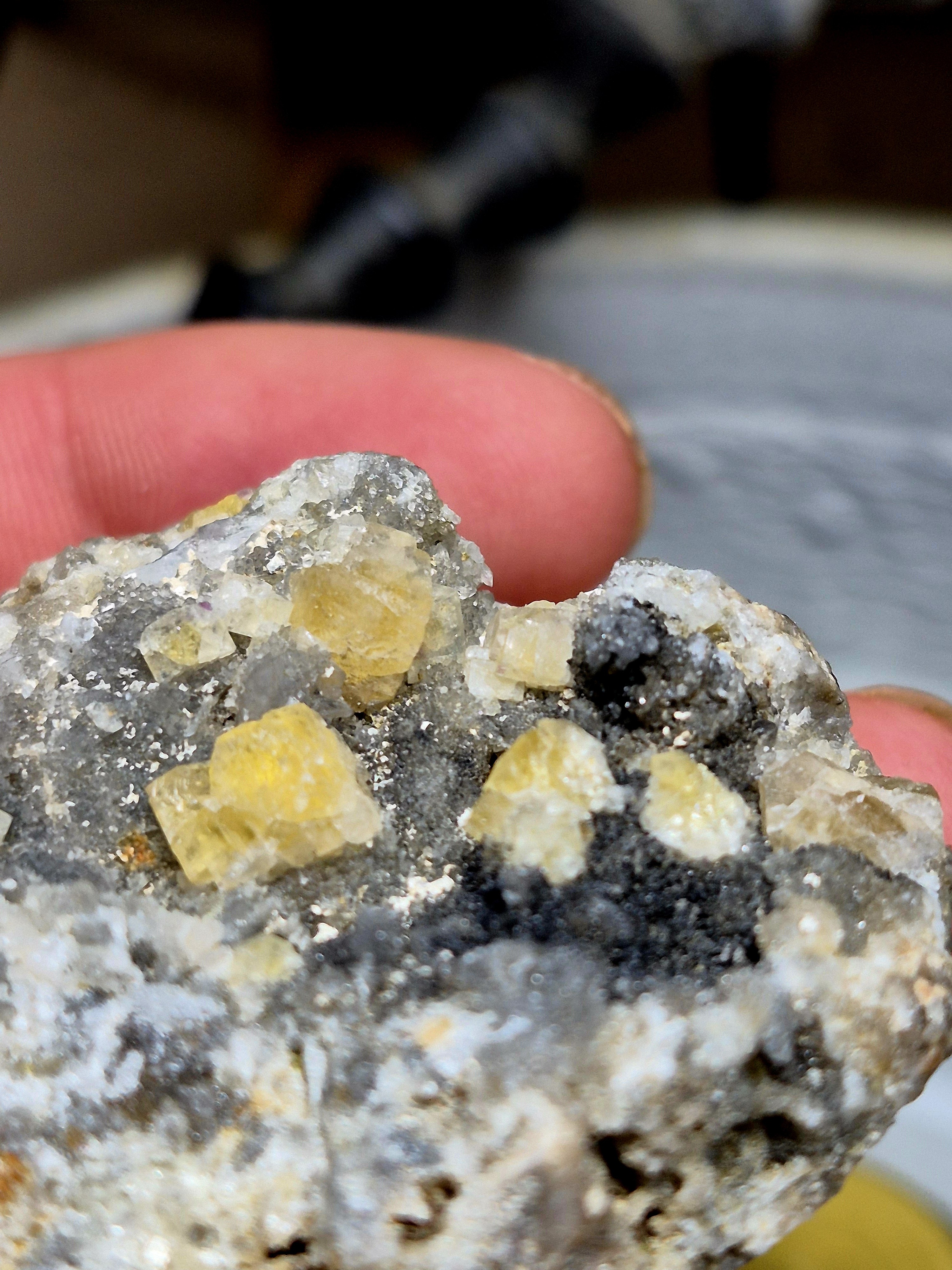 Les haldes: on y trouve essentiellement de la galène, dans du quartz (un peu de barytine...)