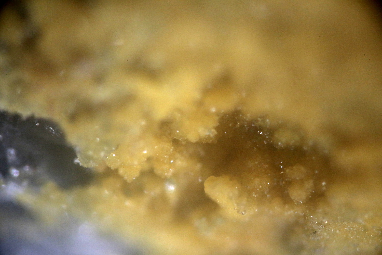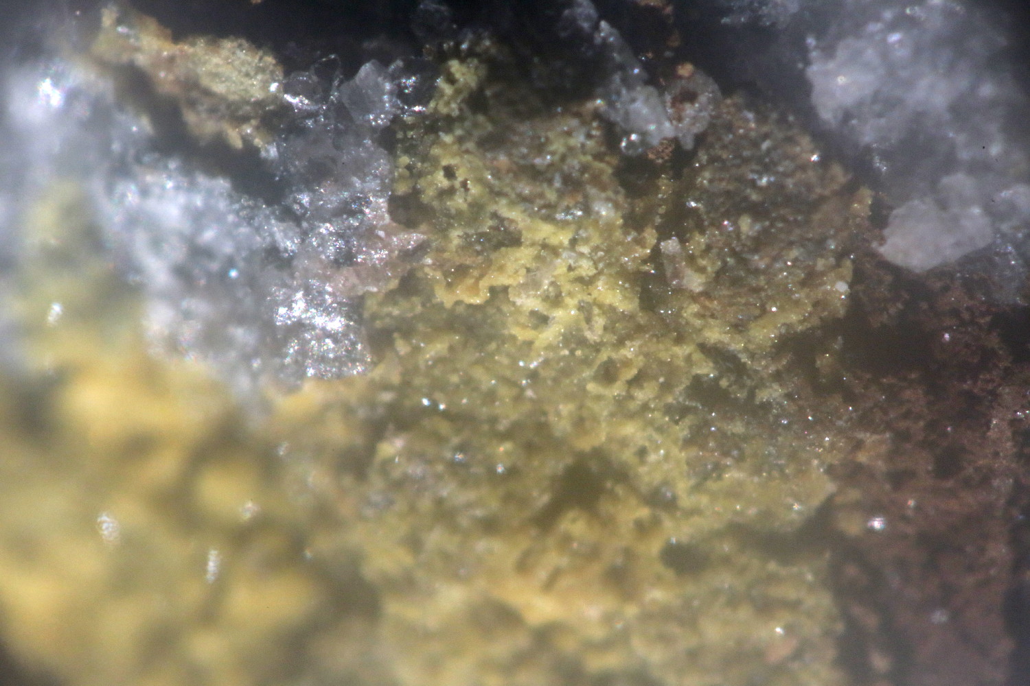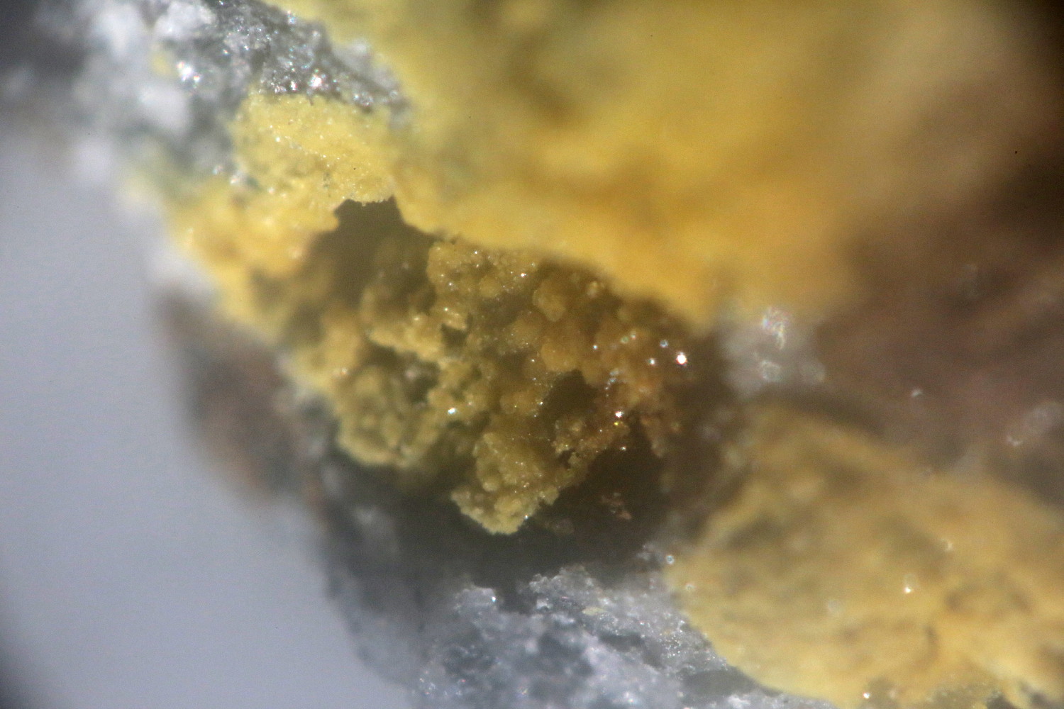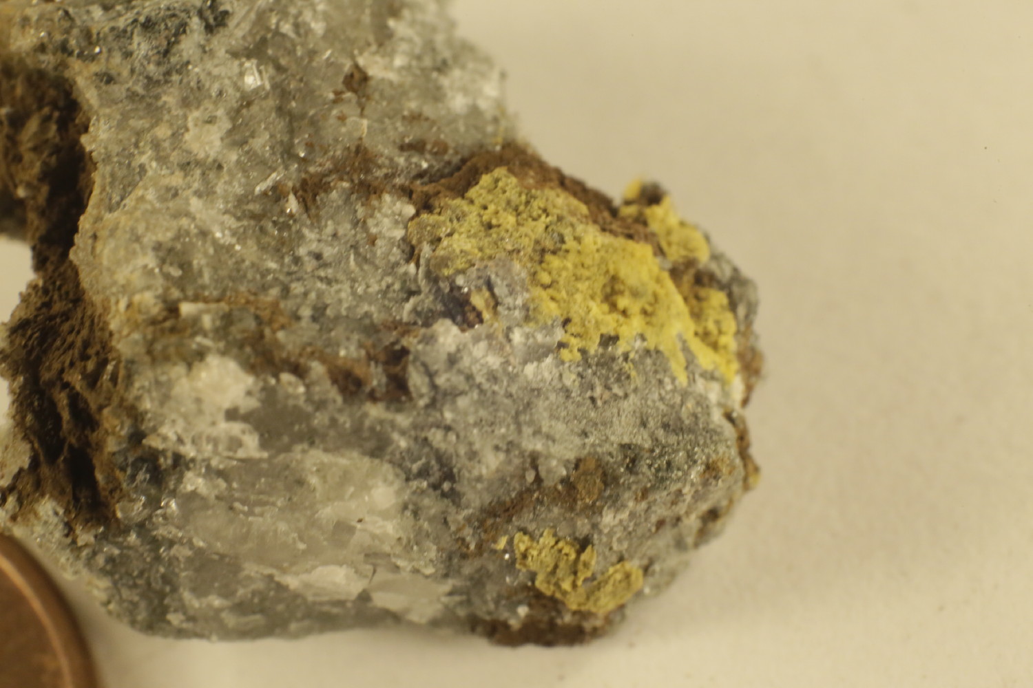 Raigho m'a passé un échantillon de micro quartz accompagnés d'une croute jaune trouvé dans sa poche à Petit Mars (44) l'été dernier.