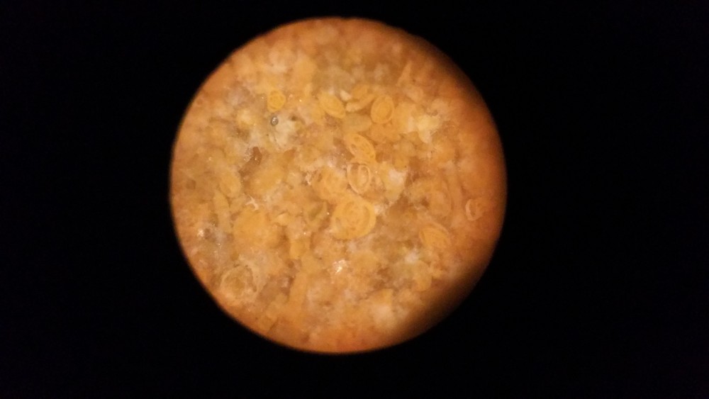 A la lumière du jour et ce caillou plongé dans l'huile , les photos seraient certainement meilleures ;