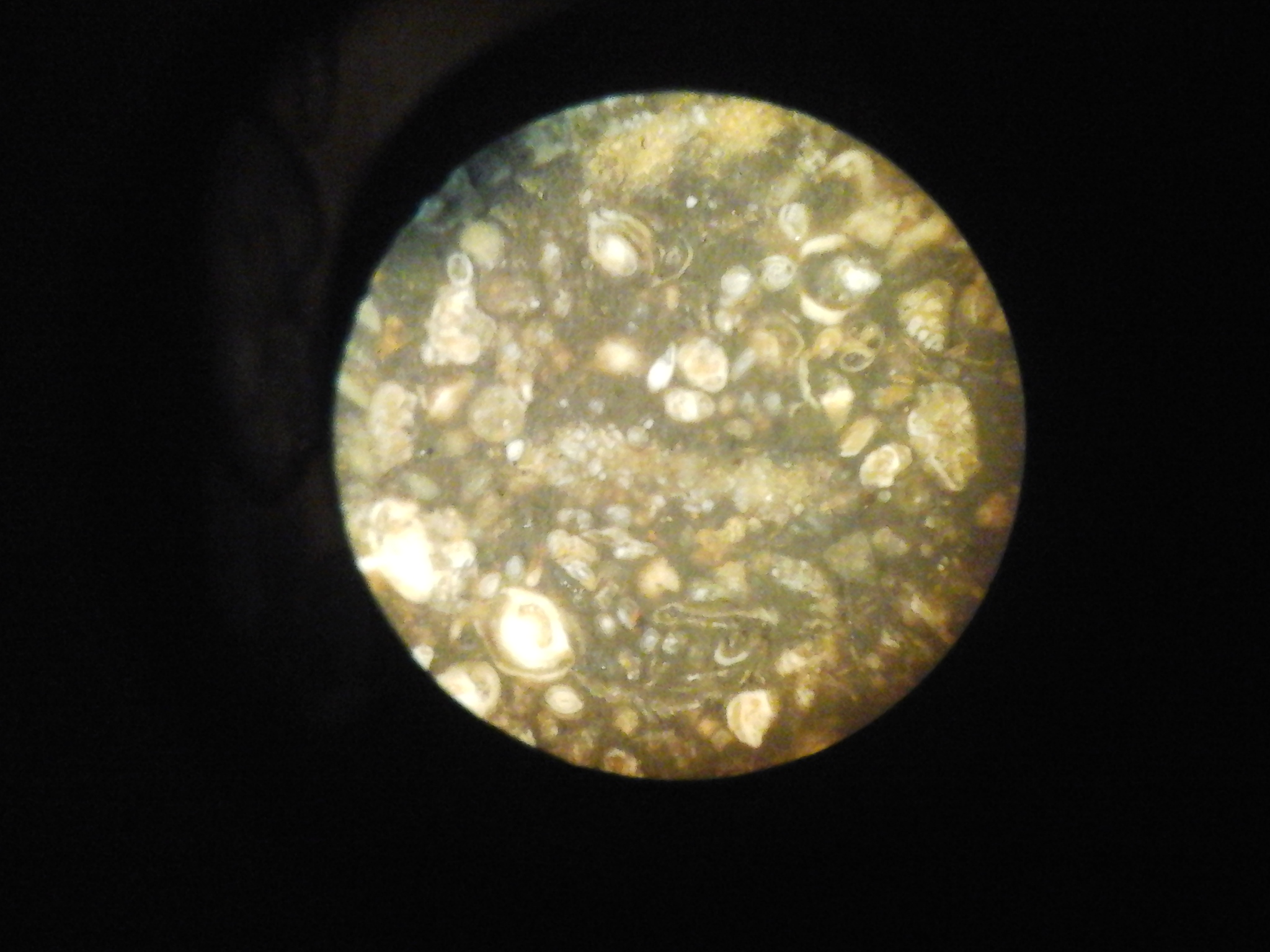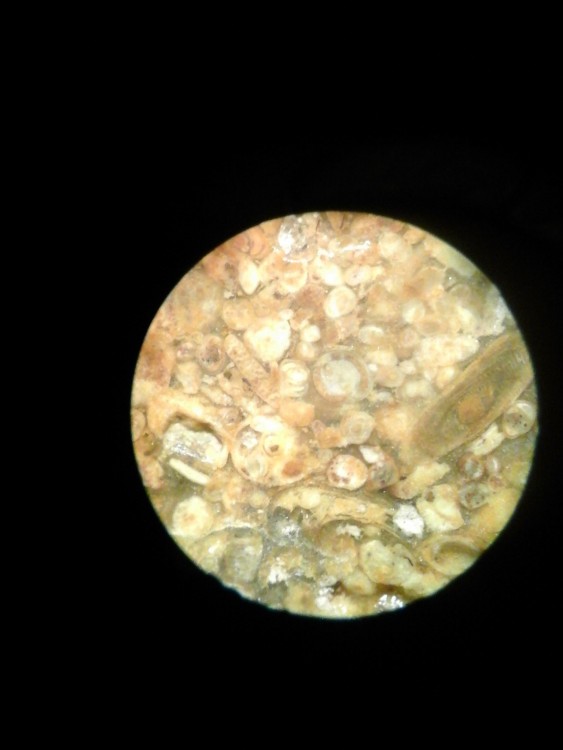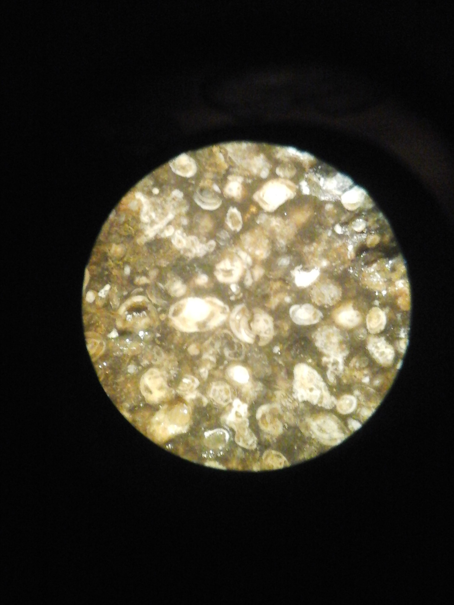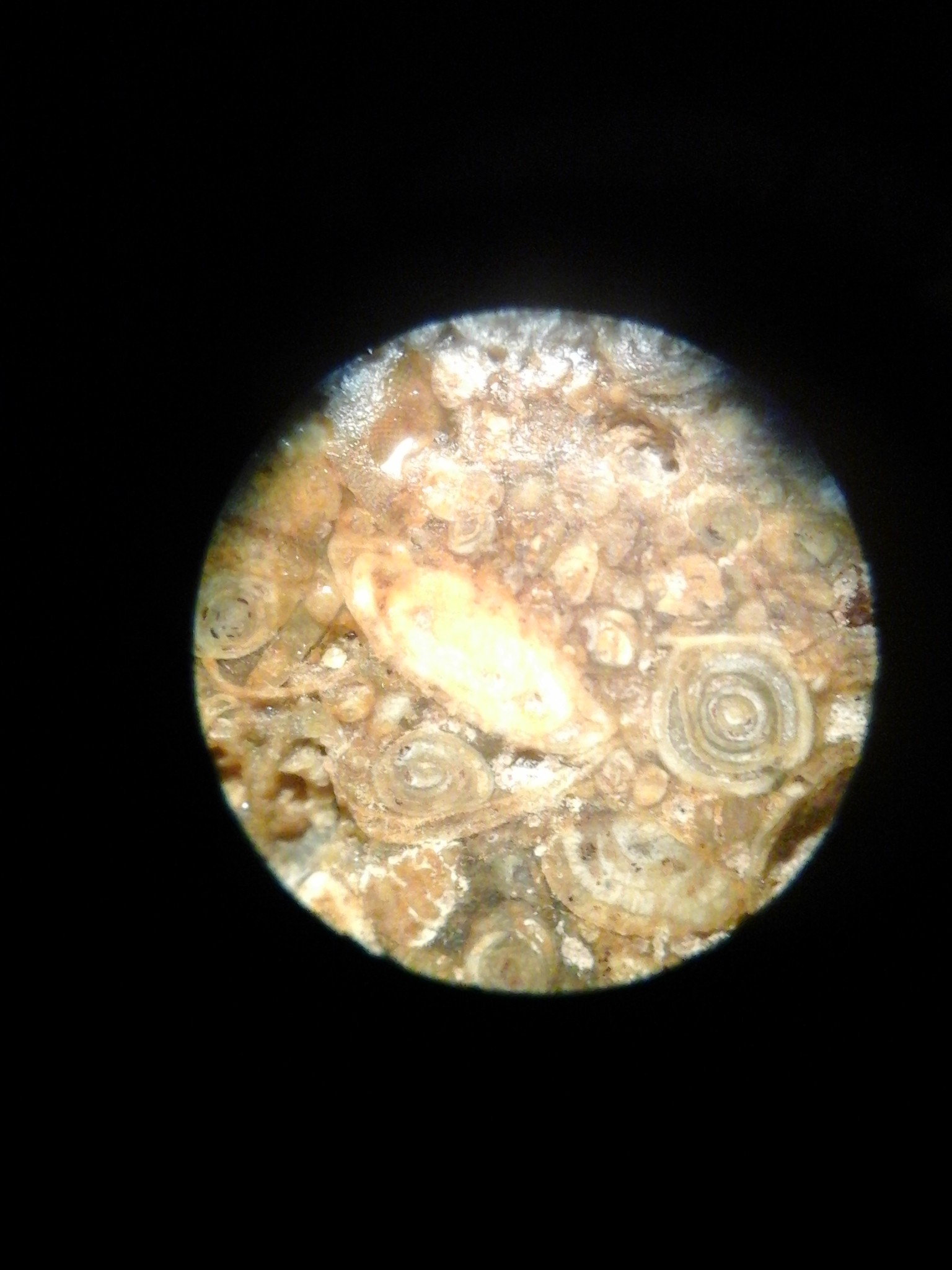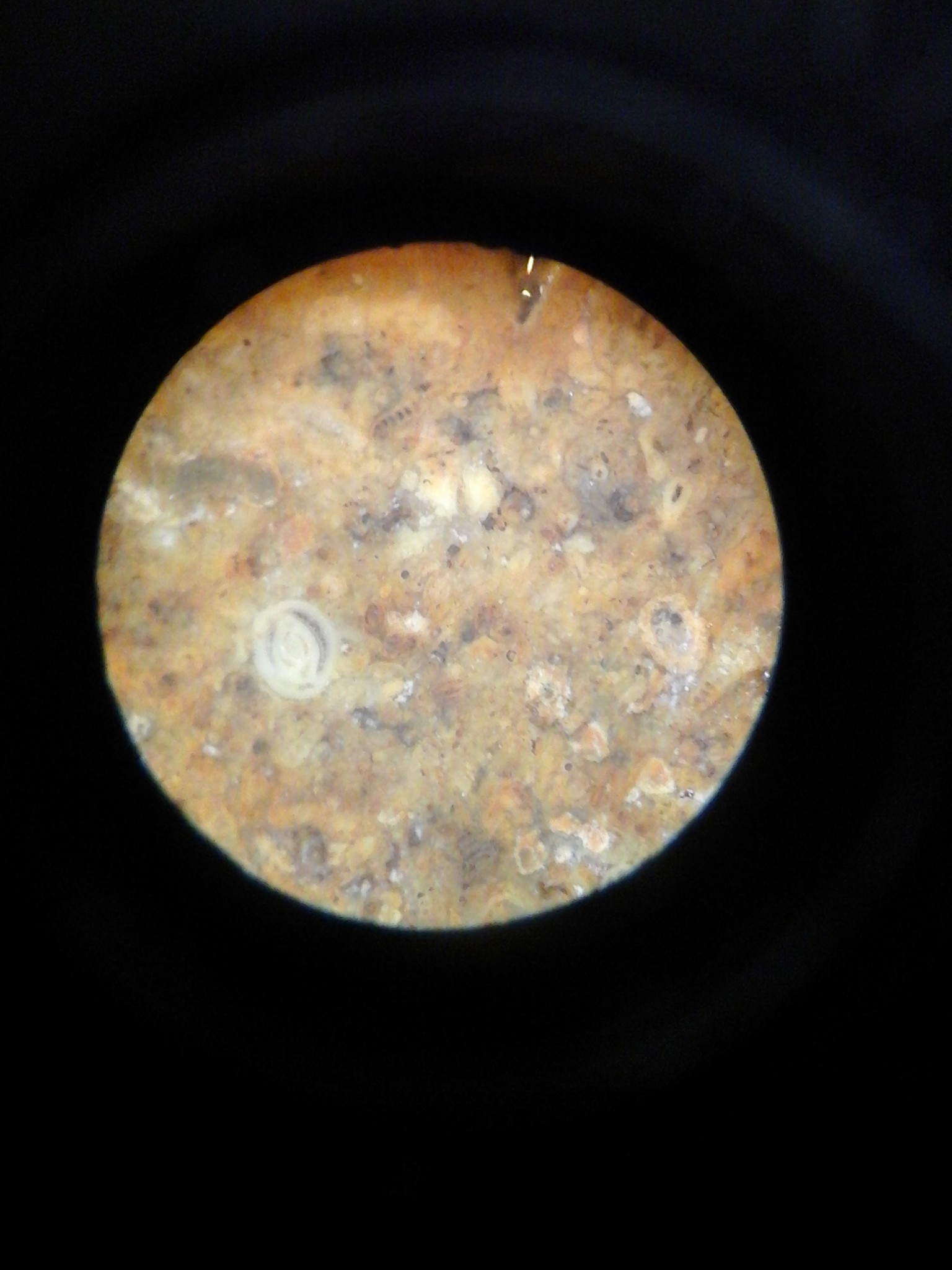 Petite parenthèse : jusqu'à présent il y a une pierre qui m'a particulièrement amusé , contenant des micro-organismes accumulés dans le coquillage en tortillon , et la deuxième photo pas triste non plus , comme si les plus volumineux avaient laissés passer les plus petits d'abbord ..: