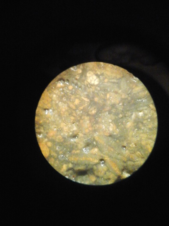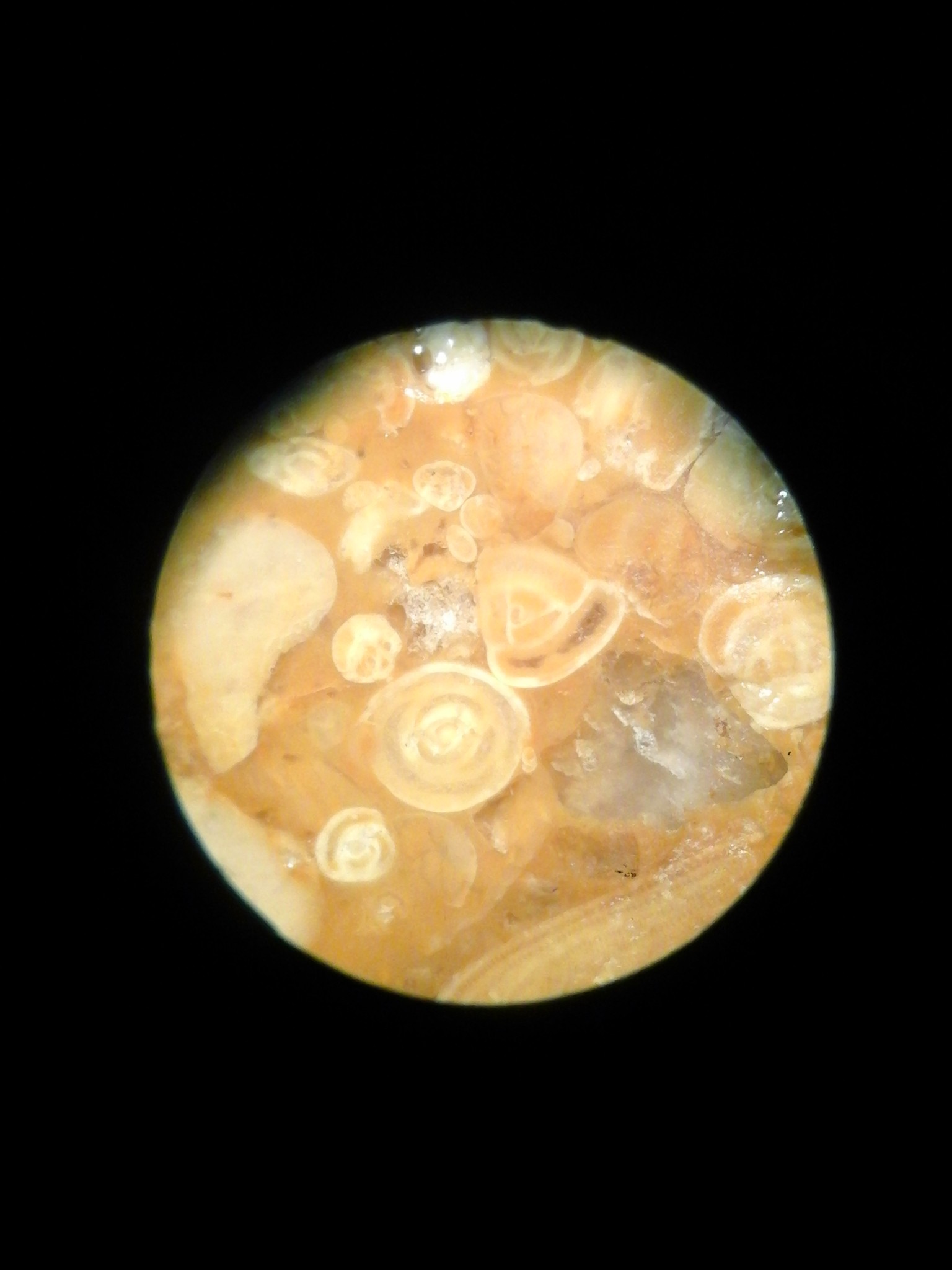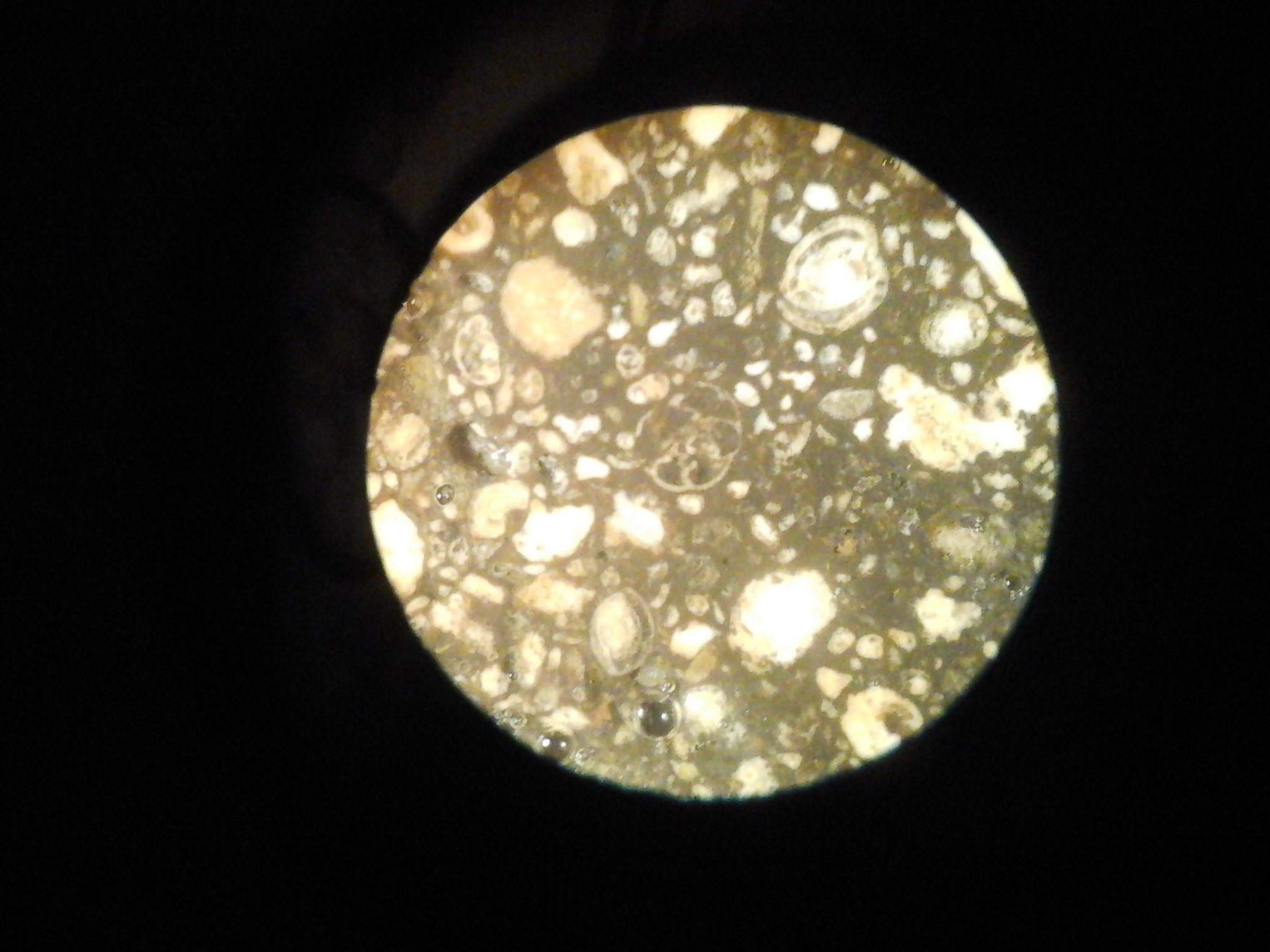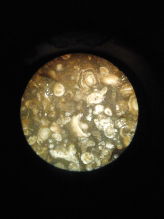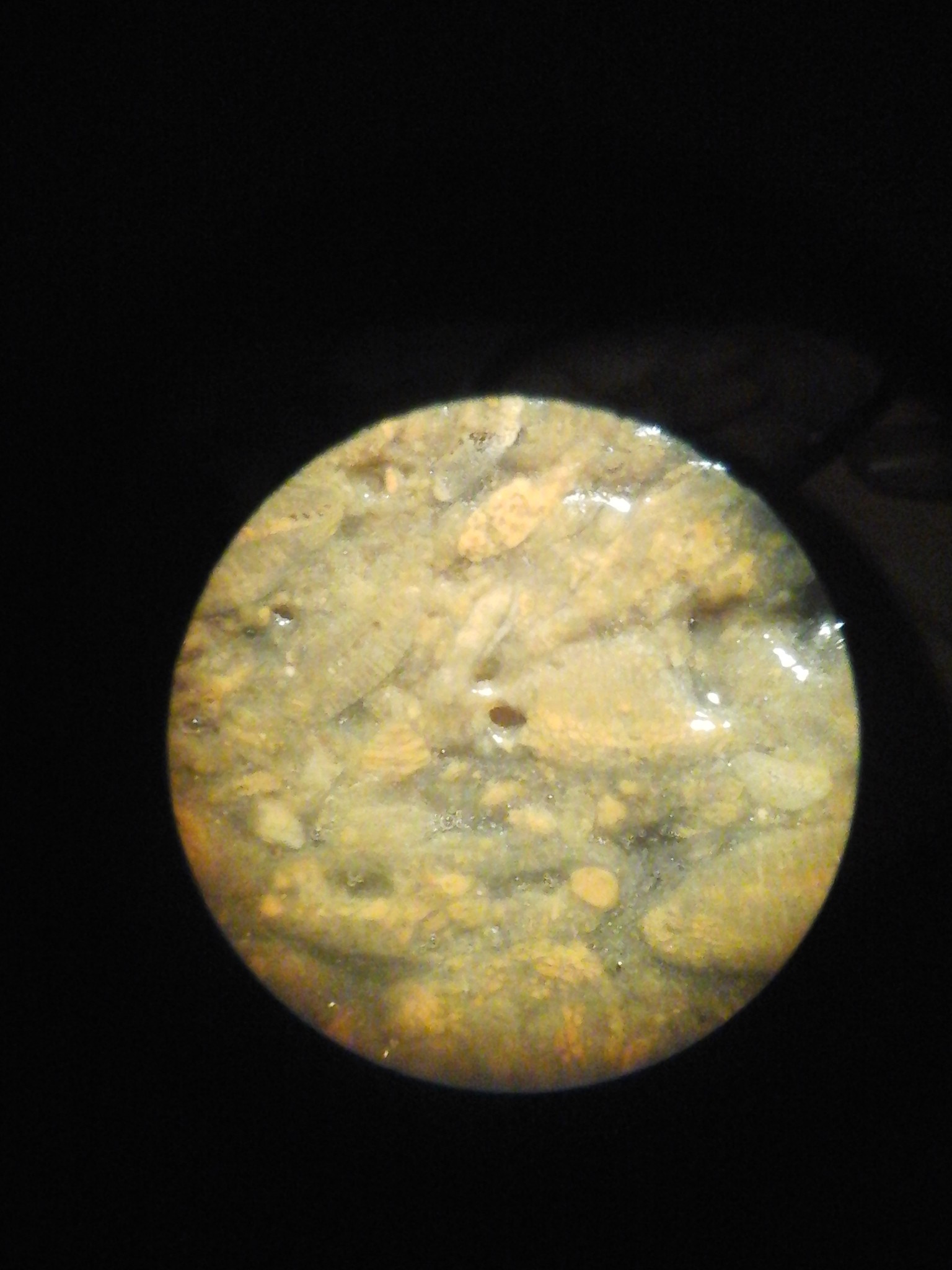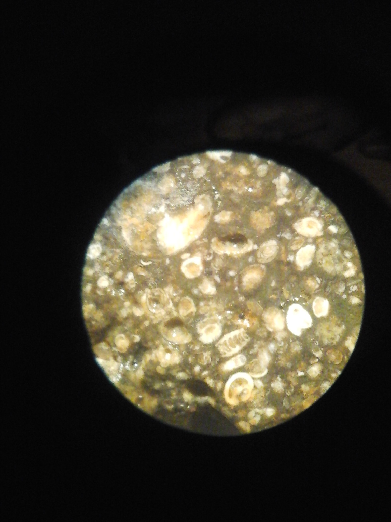 Petite parenthèse : jusqu'à présent il y a une pierre qui m'a particulièrement amusé , contenant des micro-organismes accumulés dans le coquillage en tortillon , et la deuxième photo pas triste non plus , comme si les plus volumineux avaient laissés passer les plus petits d'abbord ..: