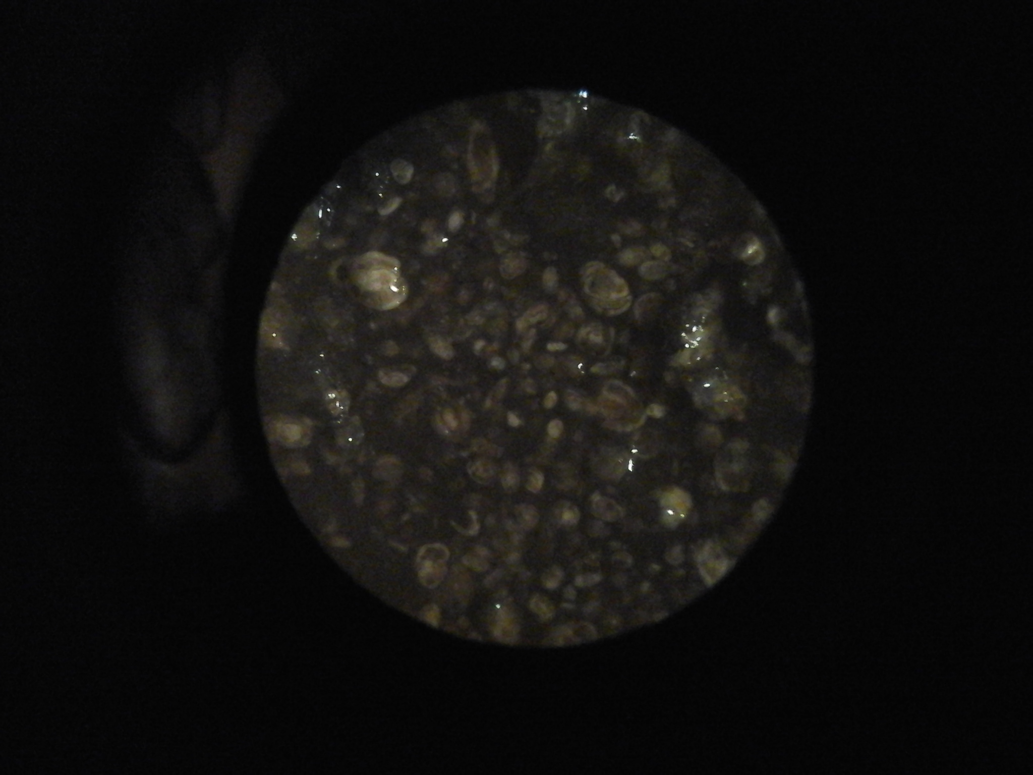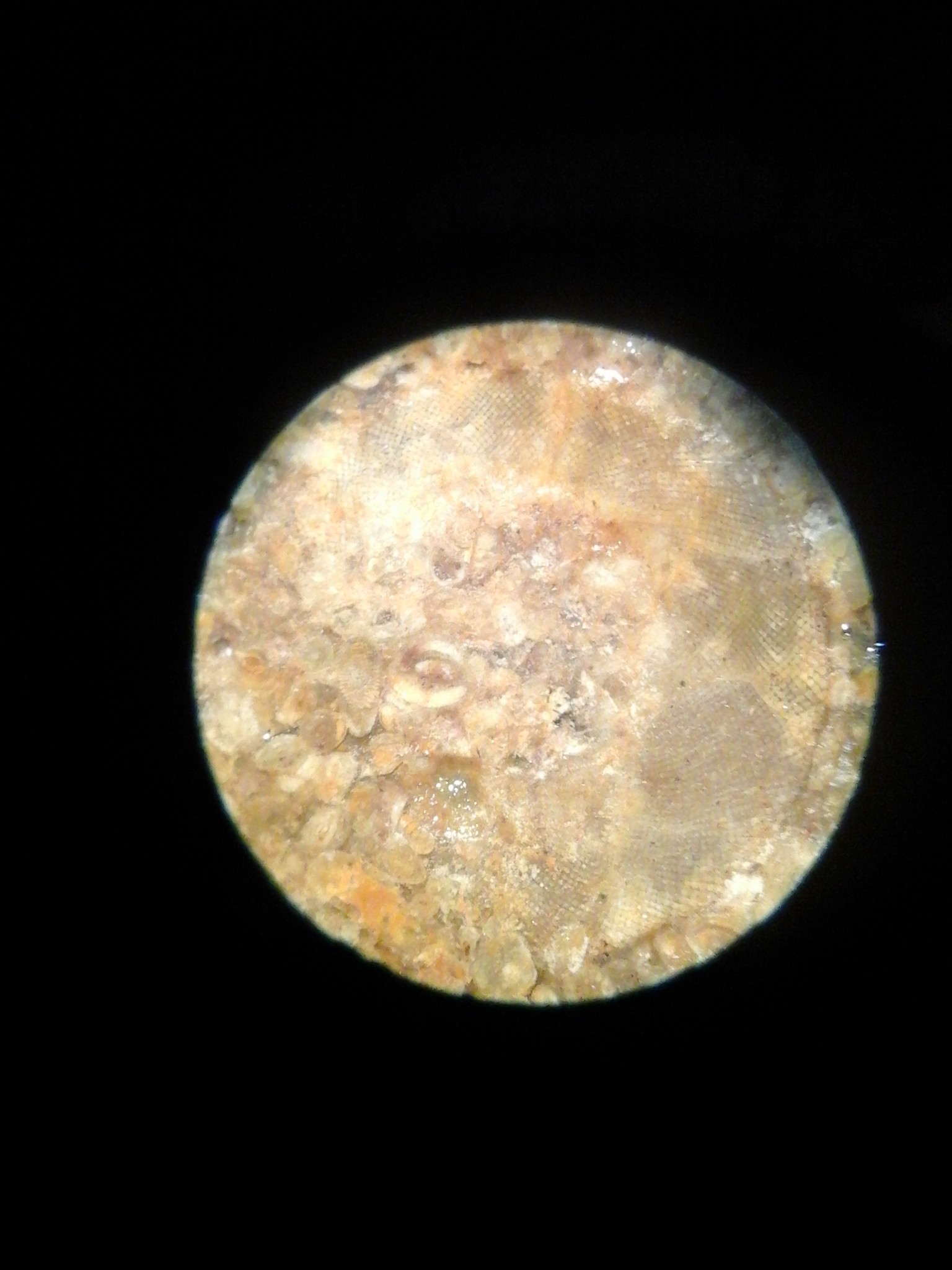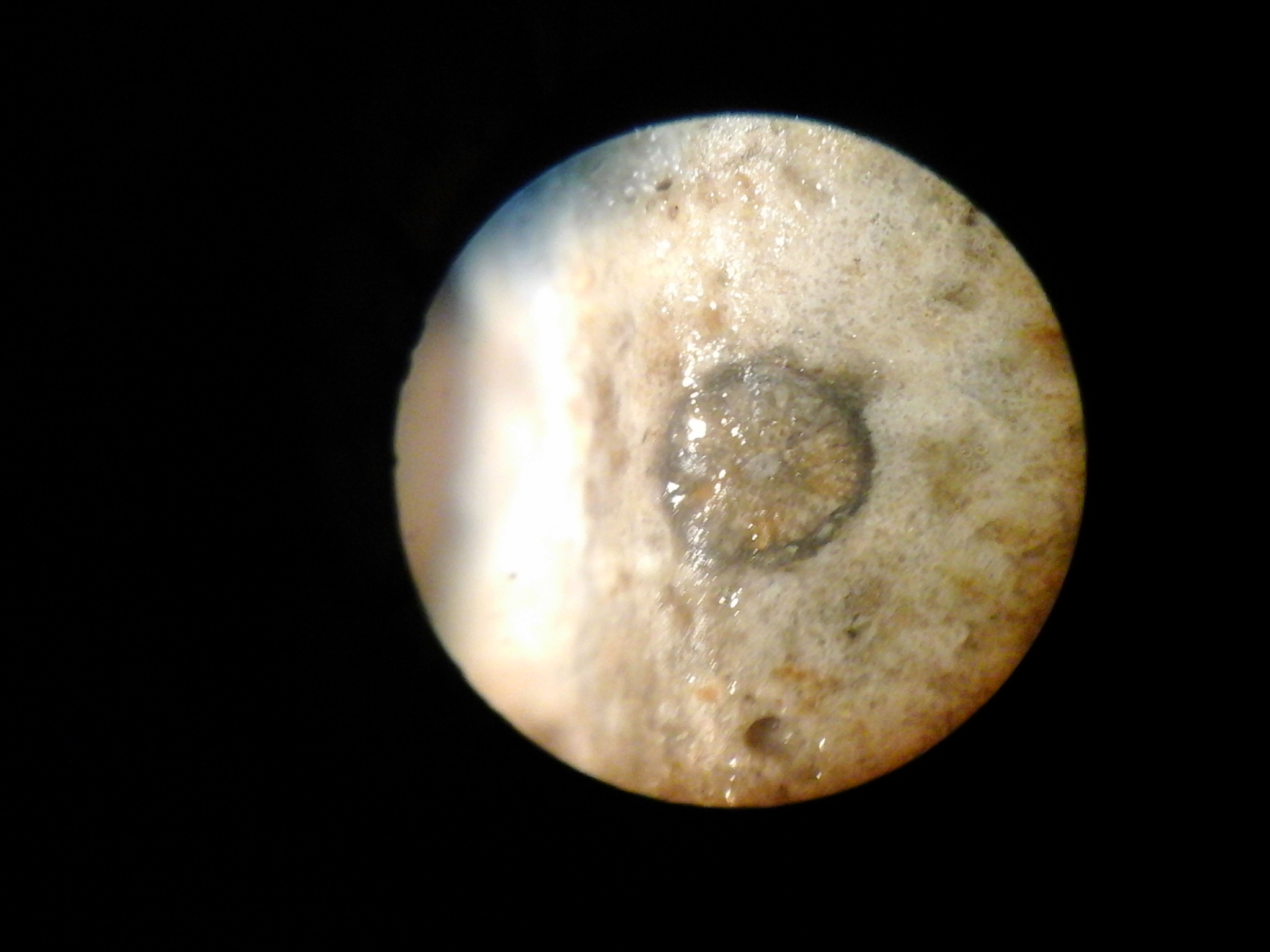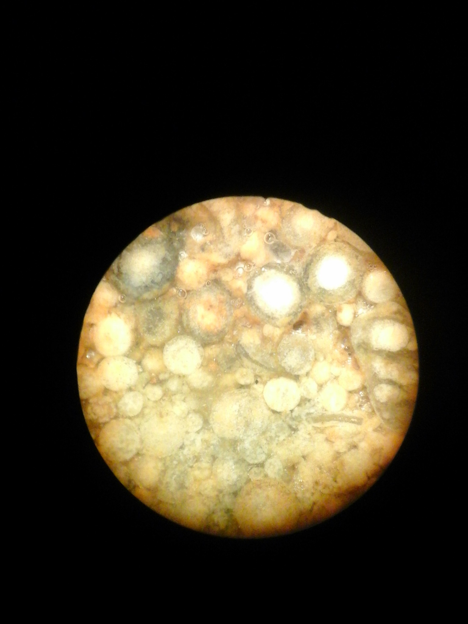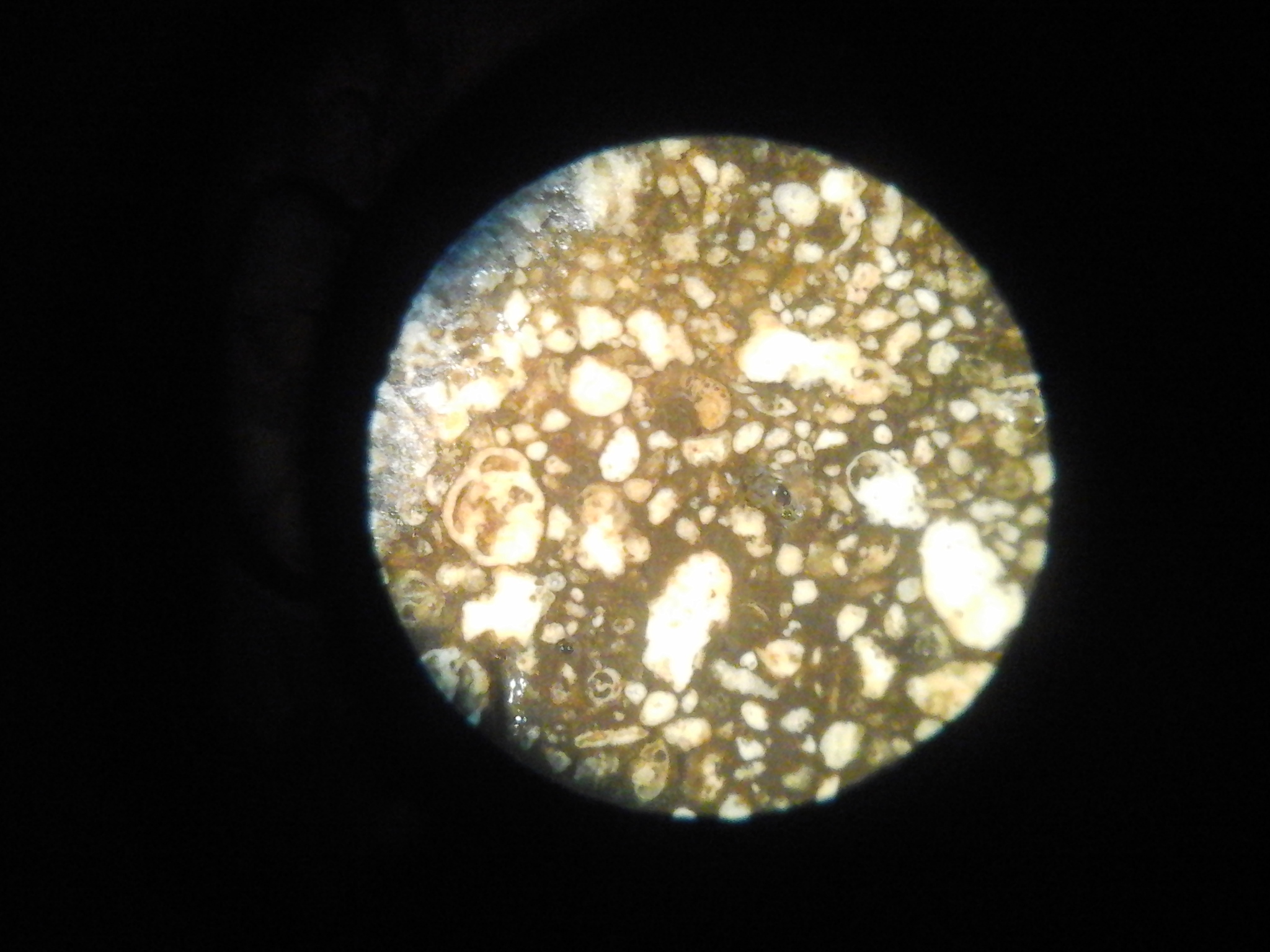 Petite parenthèse : jusqu'à présent il y a une pierre qui m'a particulièrement amusé , contenant des micro-organismes accumulés dans le coquillage en tortillon , et la deuxième photo pas triste non plus , comme si les plus volumineux avaient laissés passer les plus petits d'abbord ..: