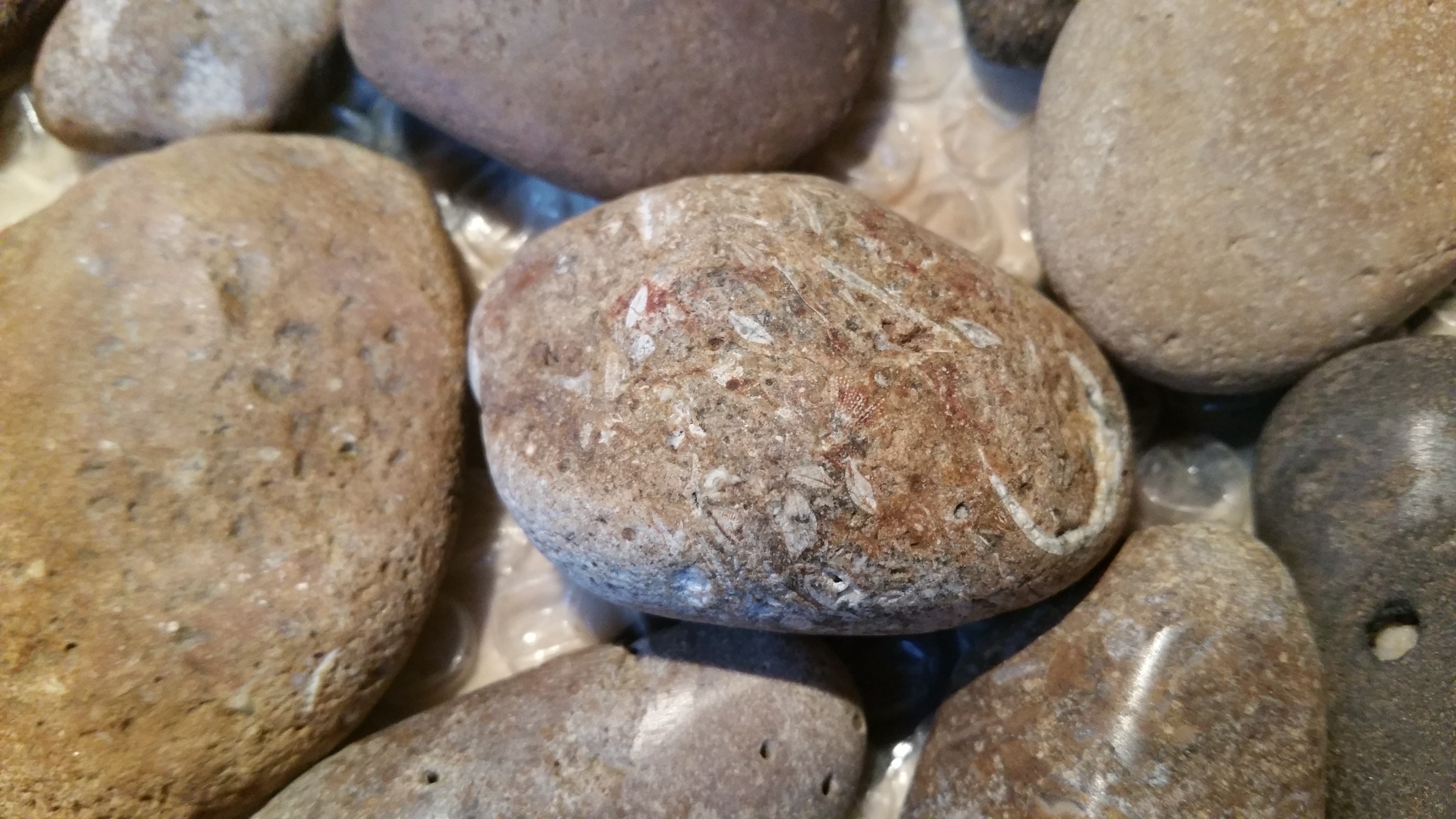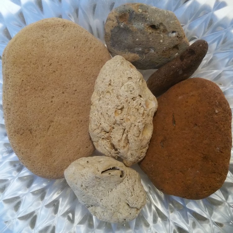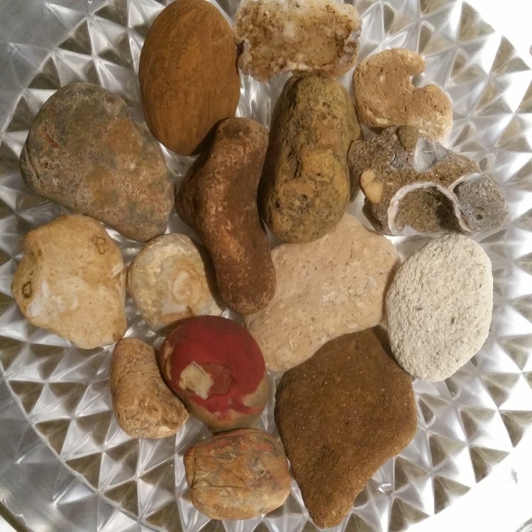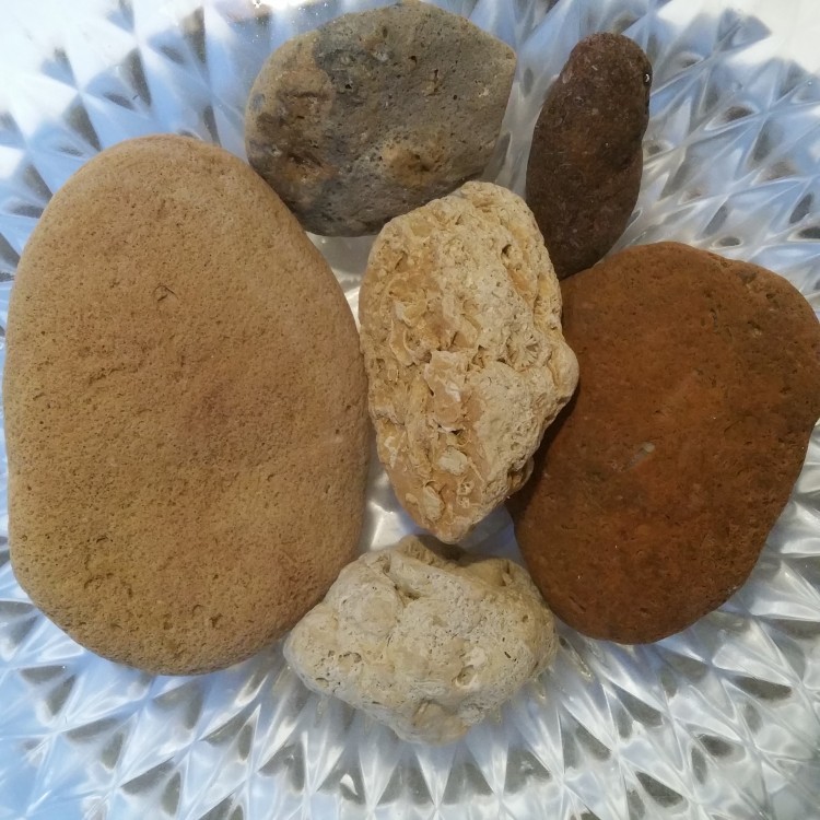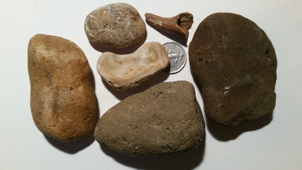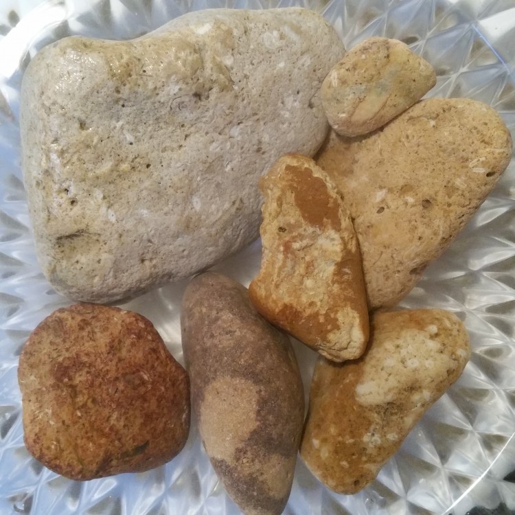 Voilà le menu du jour , les trouvailles , le triage puis la sélection dont un grainstone et un os vraisemblablement fossilisé :