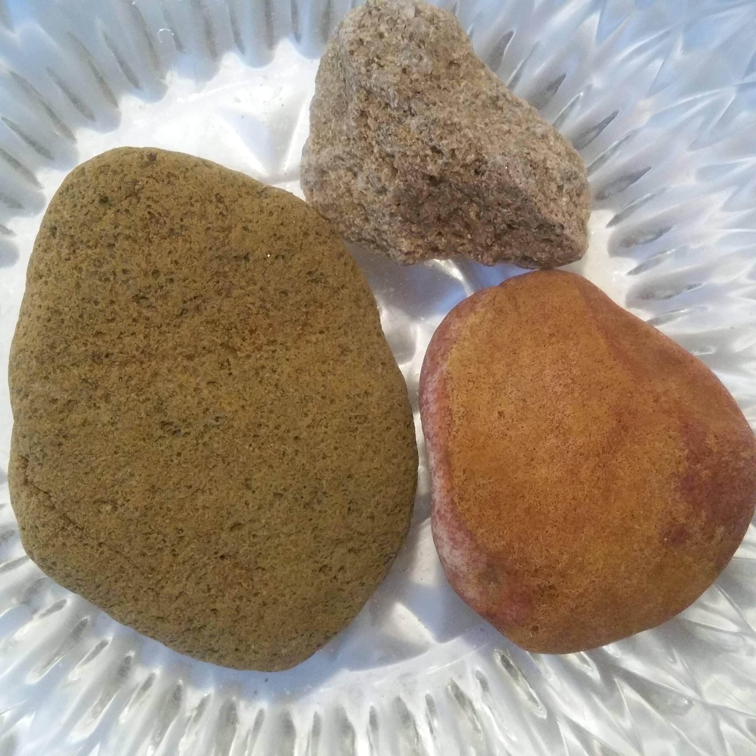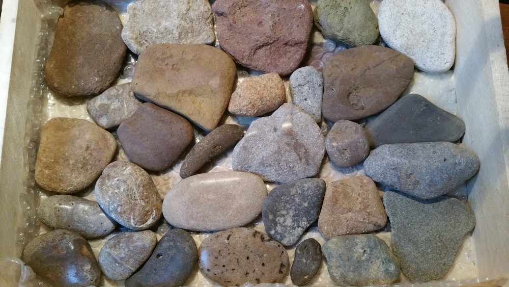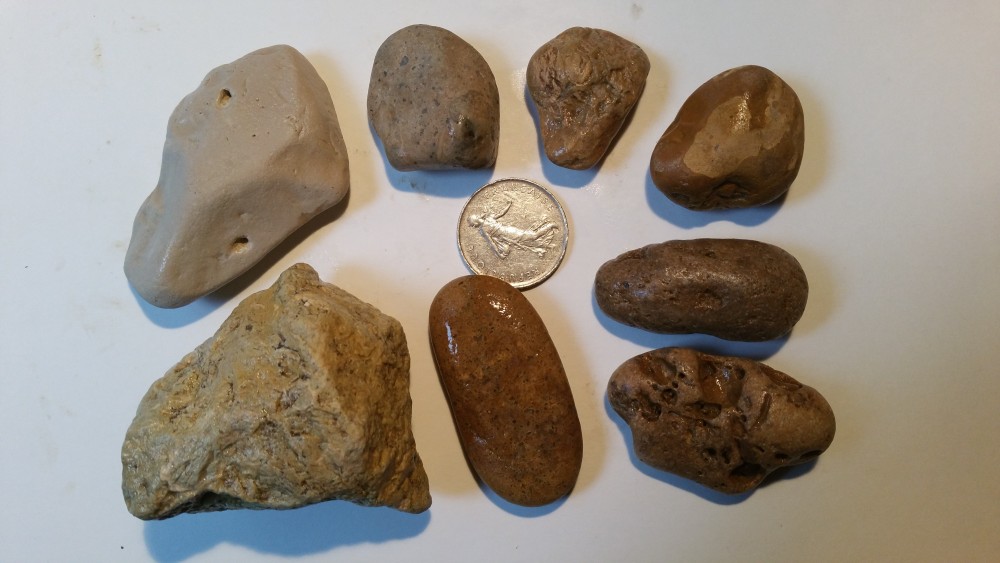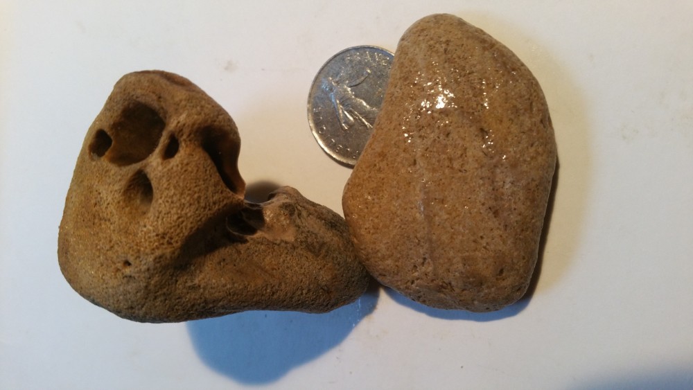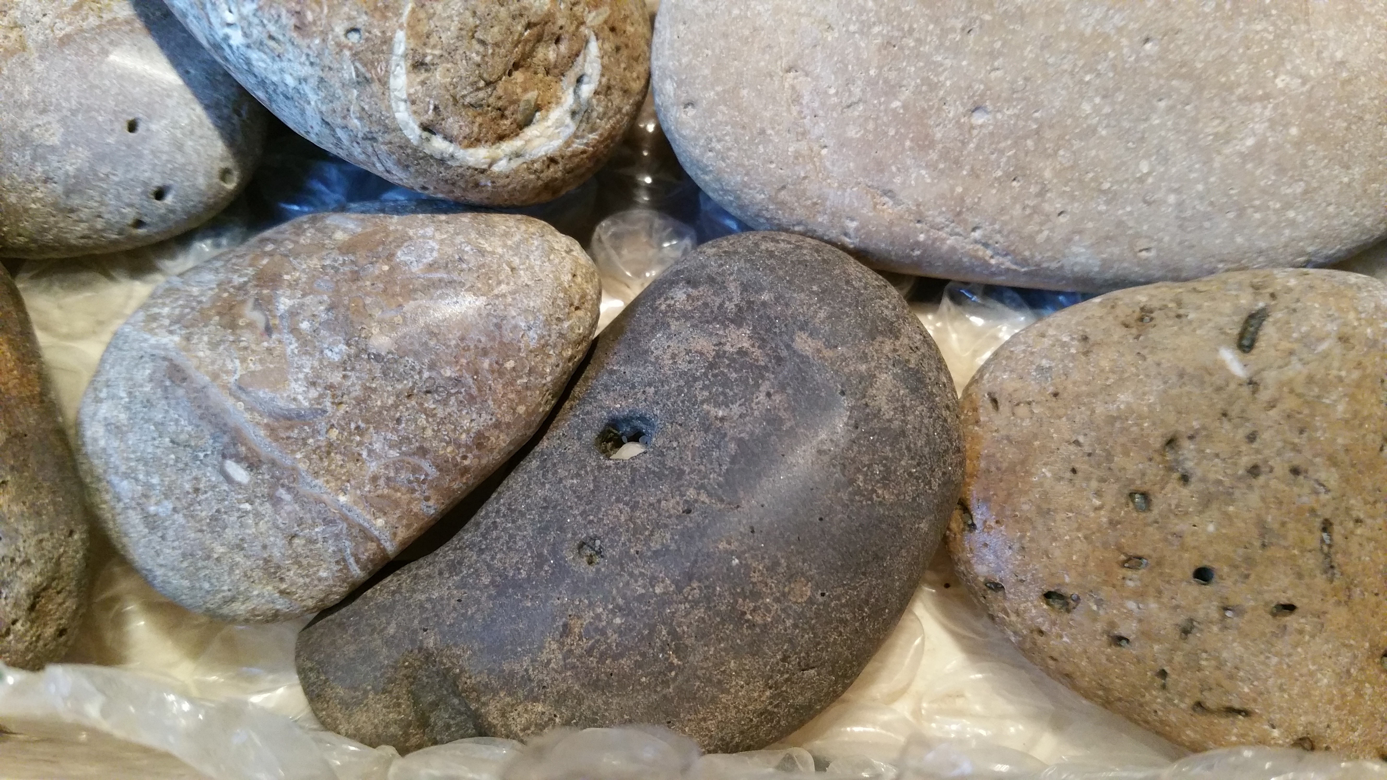Voilà le menu du jour , les trouvailles , le triage puis la sélection dont un grainstone et un os vraisemblablement fossilisé :