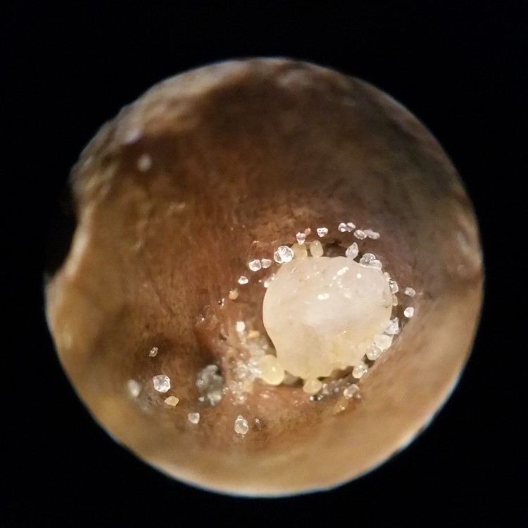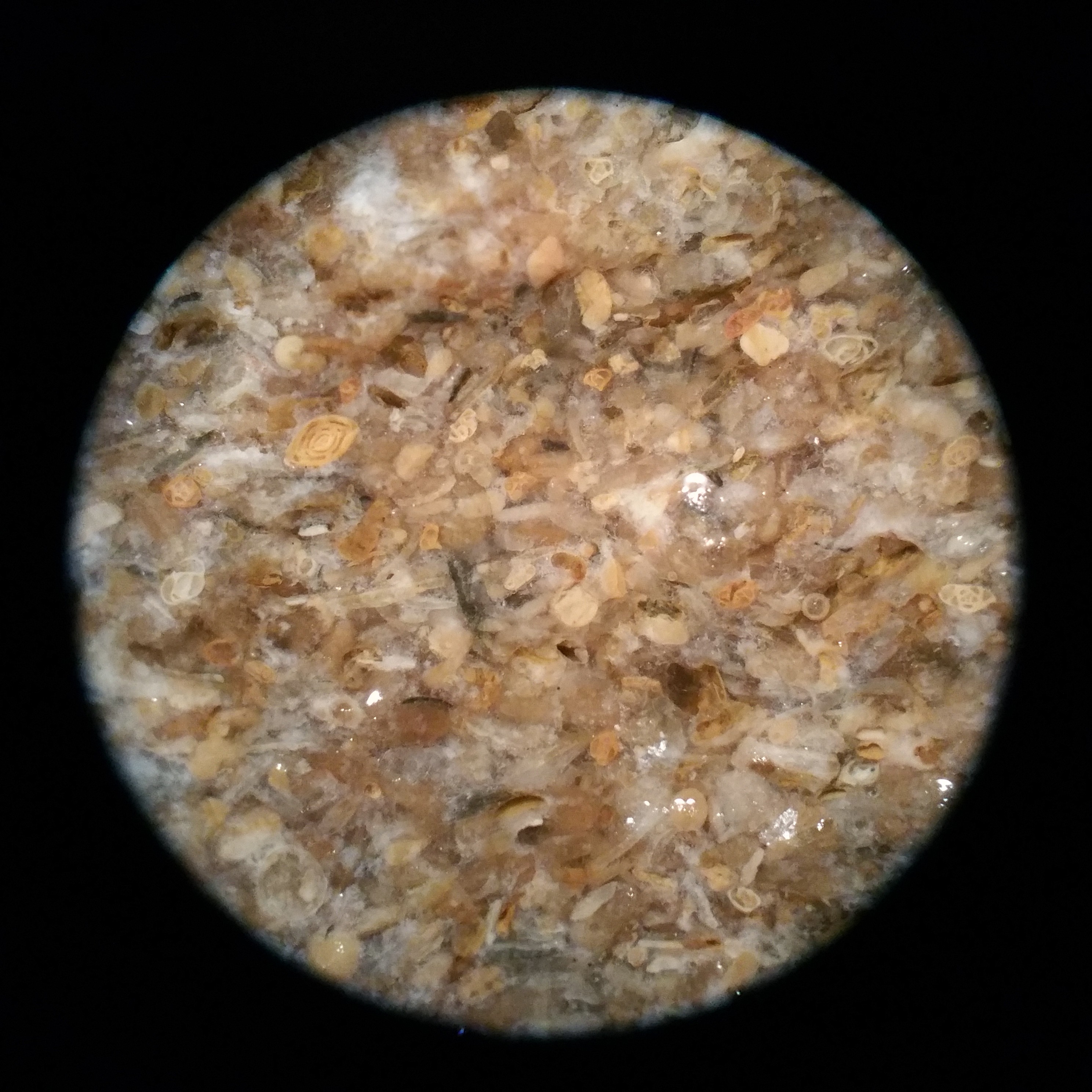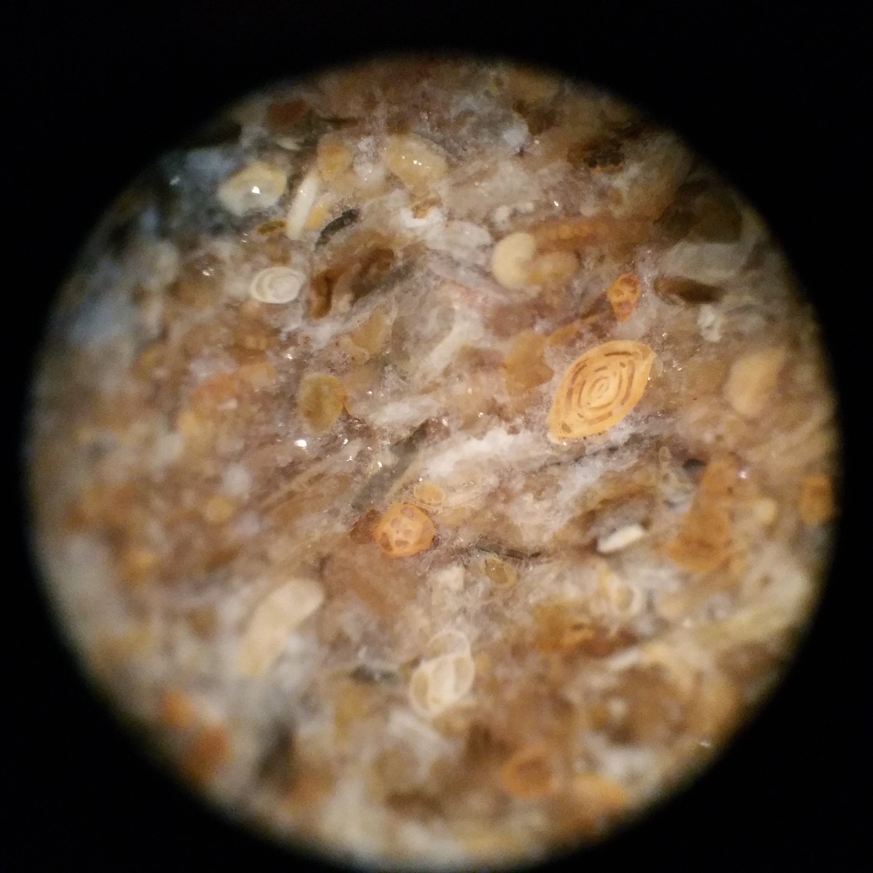 Encore et tous jours du nouveau , des cristaux , cailloux à polir ou fragmenter , les minimicrofossiles , un grès à nummulites , des milioles en pagaille ,