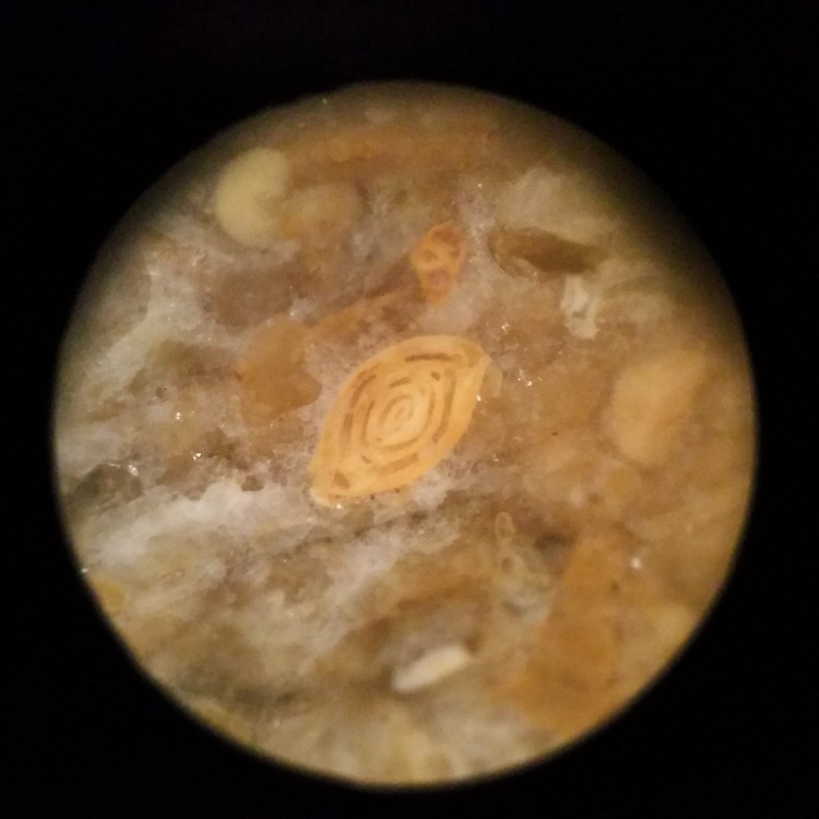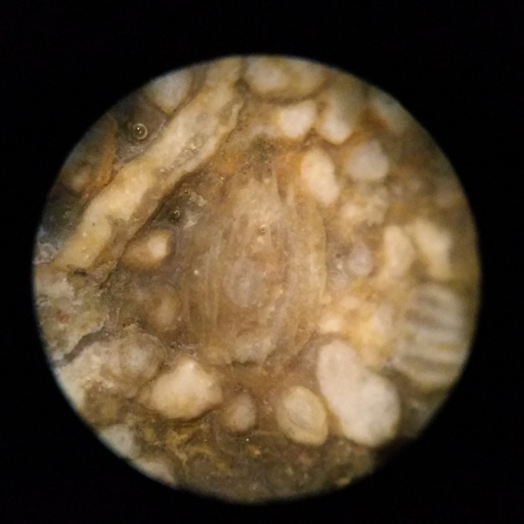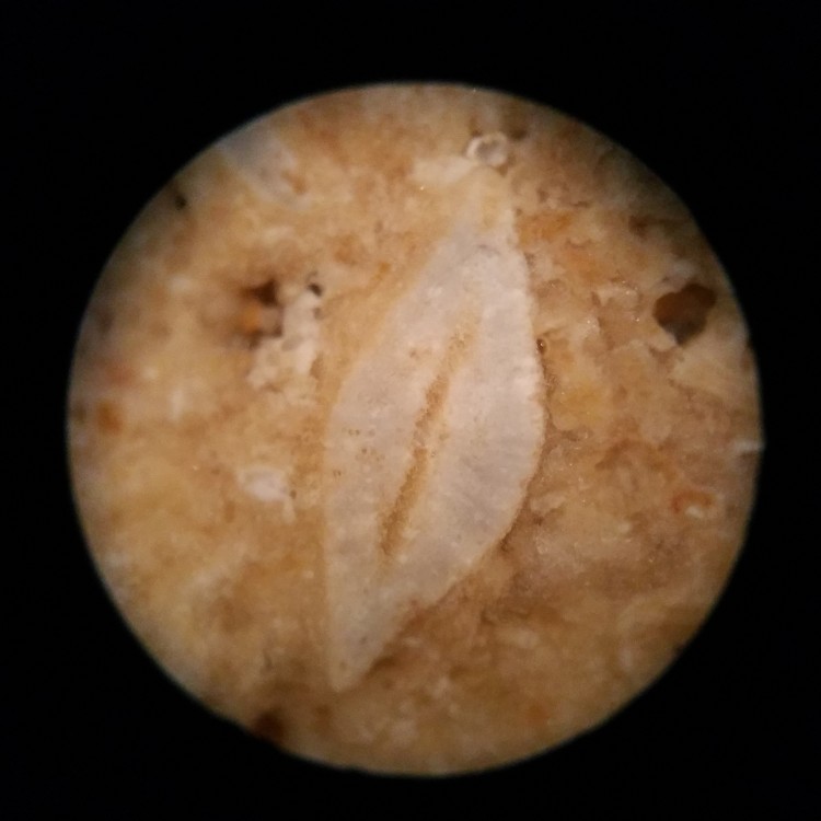 En recherchant les microfossiles on peut parfois tomber sur un fossile un peu plus grand :