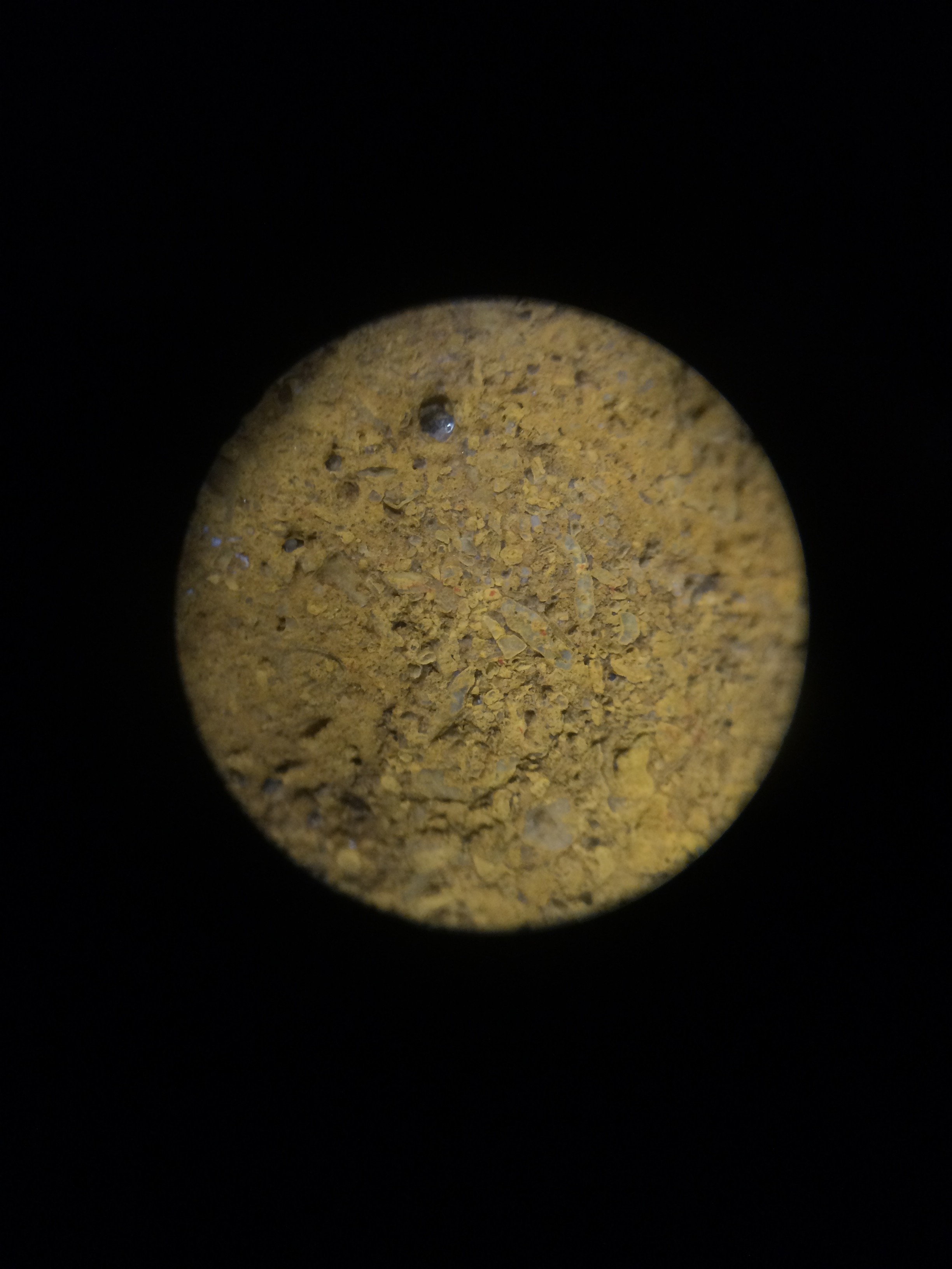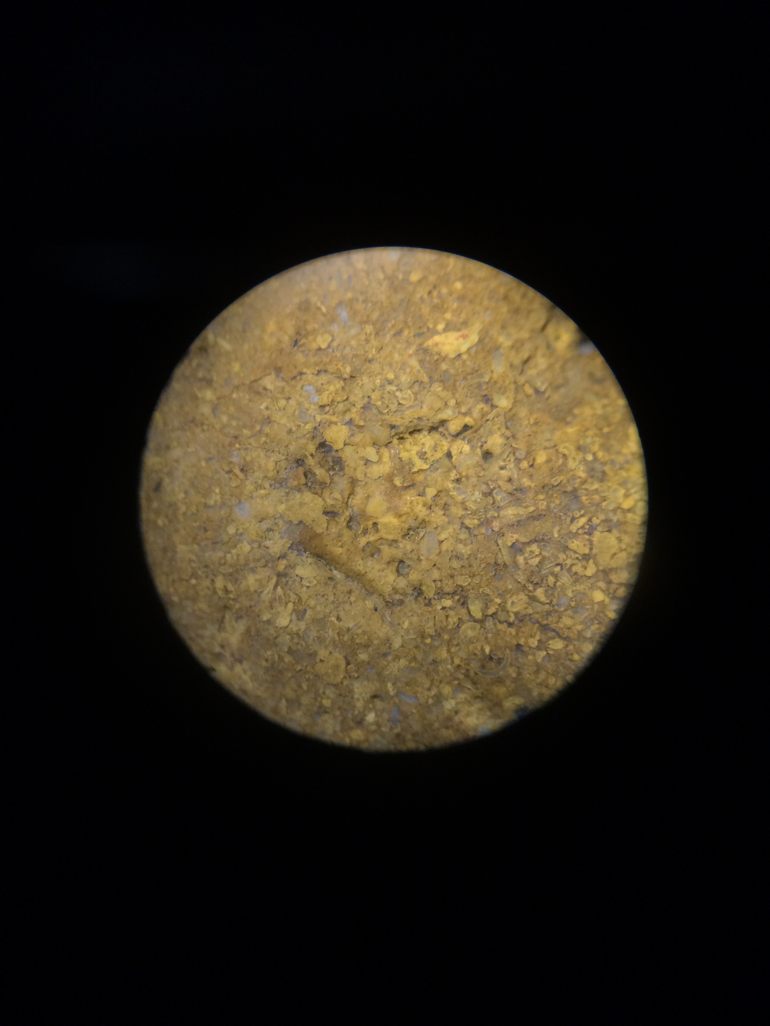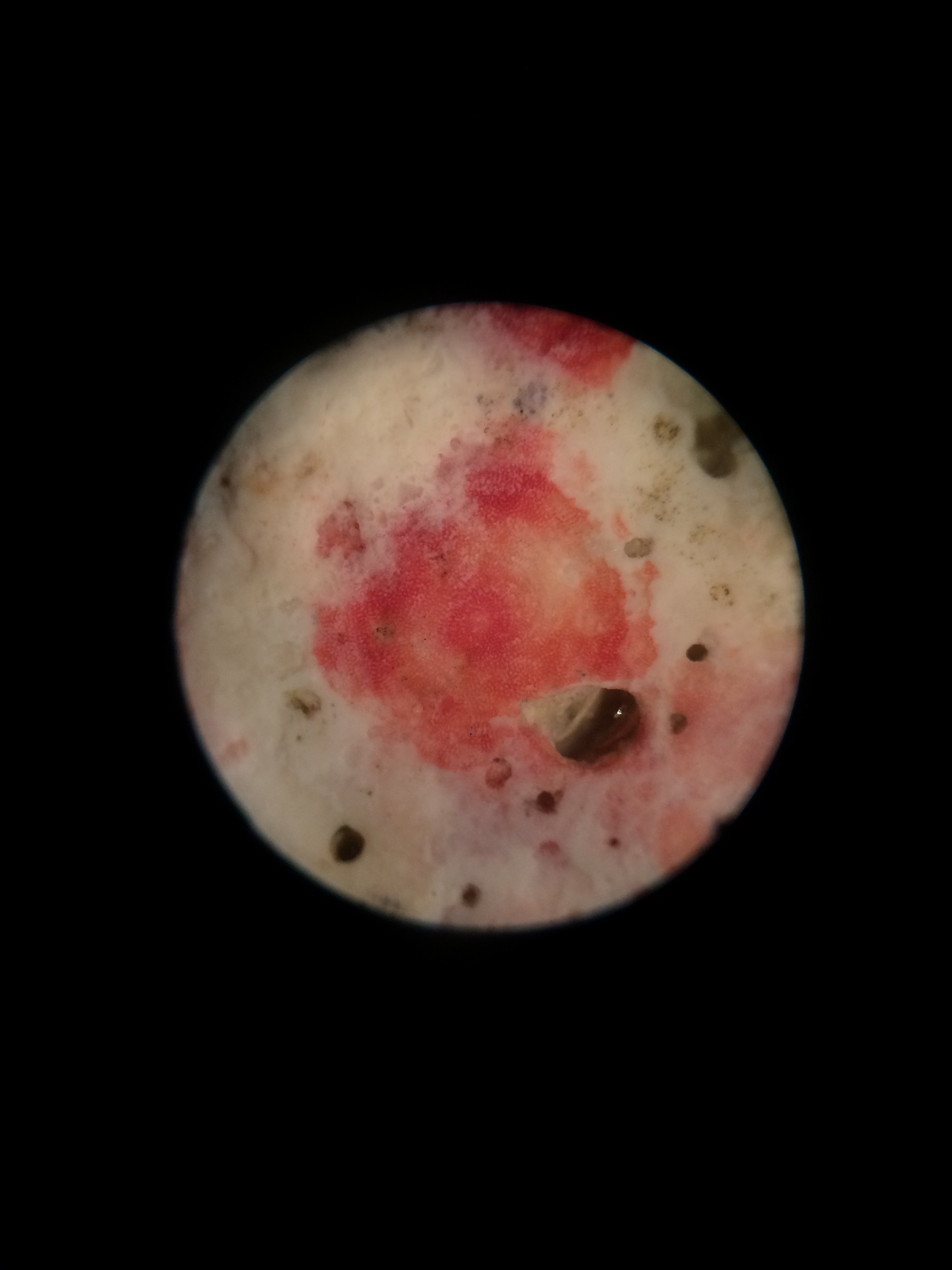 Le corail au milieu comporte une multitude de mini microfossiles (naissains de micro organismes ?) qu’il doit être possible de déterminer :